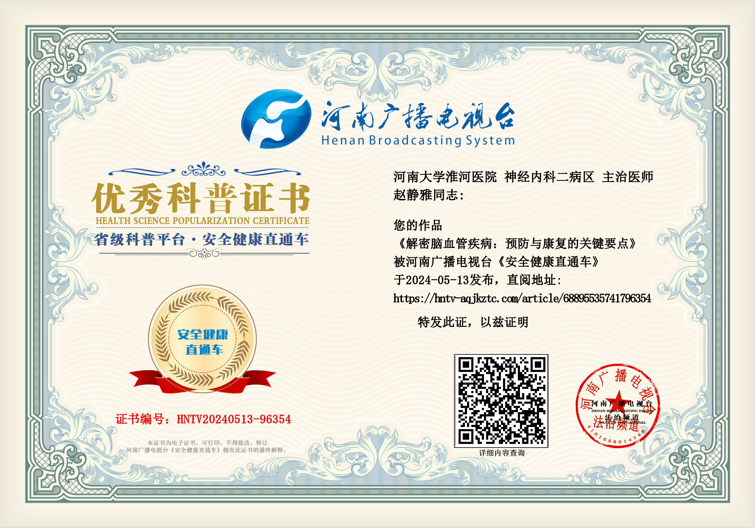 (赵静雅 河南大学淮河医院 神经内科二病区 主治医师)