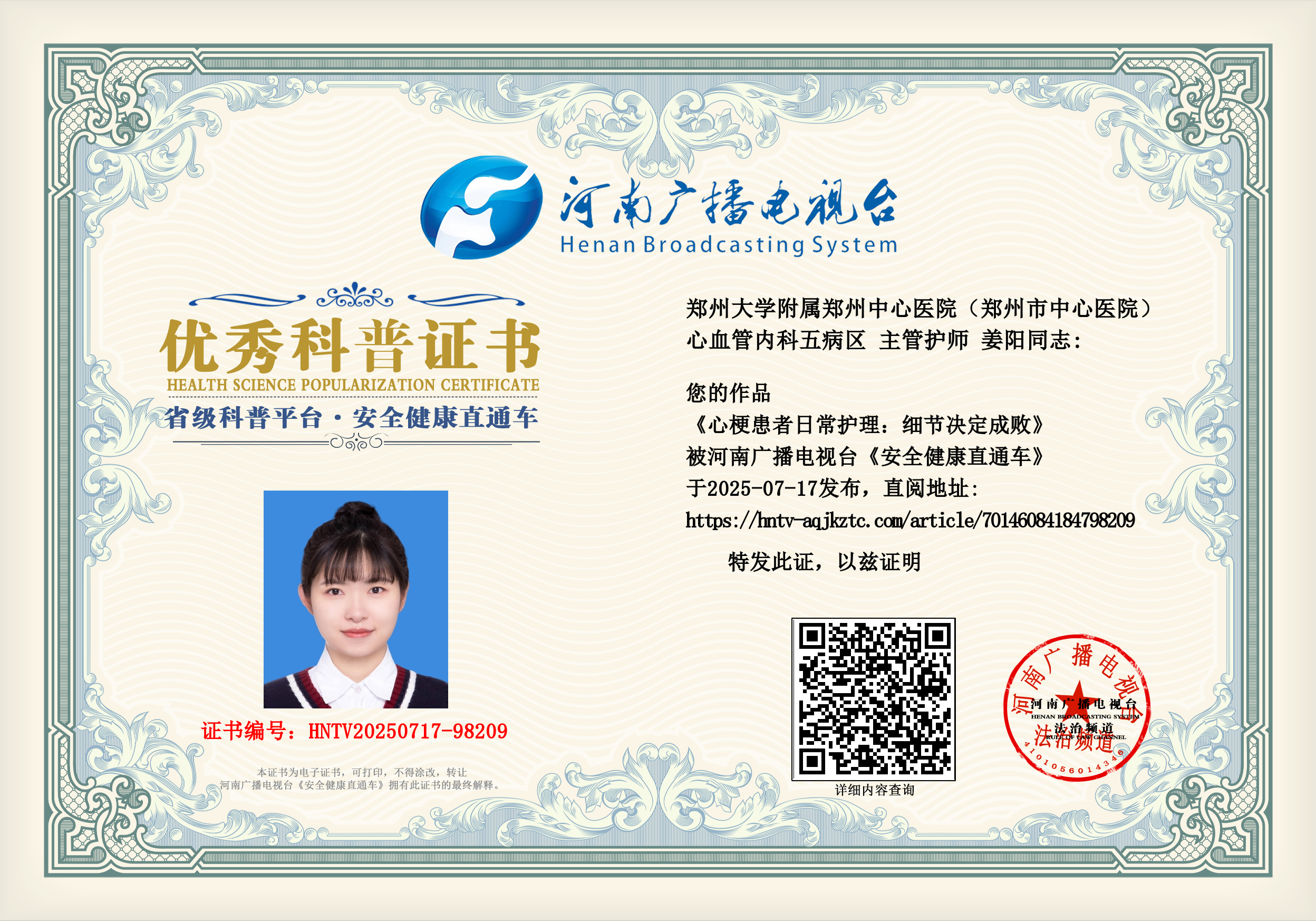 (姜阳 郑州大学附属郑州中心医院(郑州市中心医院) 心血管内科五病区 主管护师)