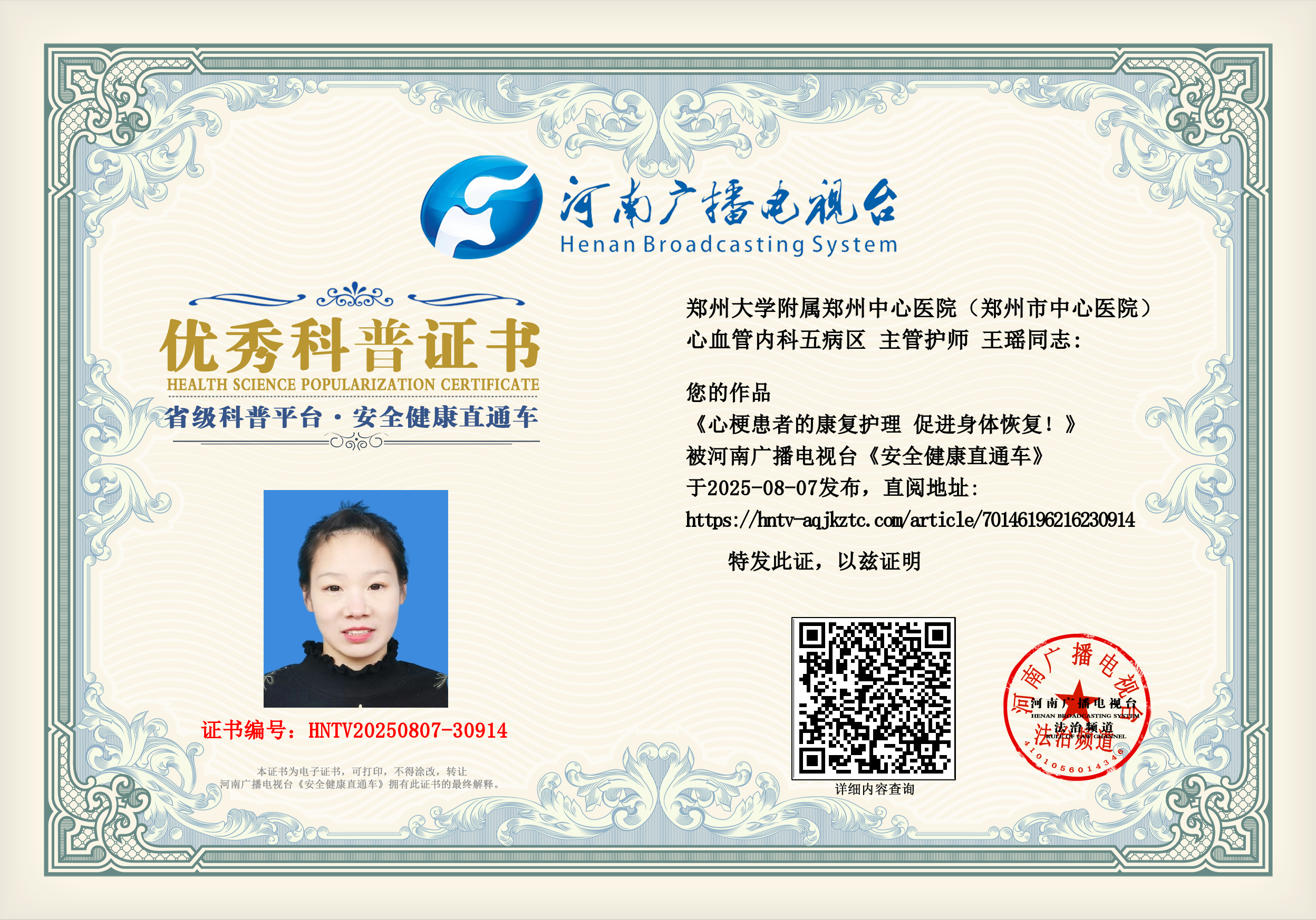 (王瑶 郑州大学附属郑州中心医院(郑州市中心医院) 心血管内科五病区 主管护师)