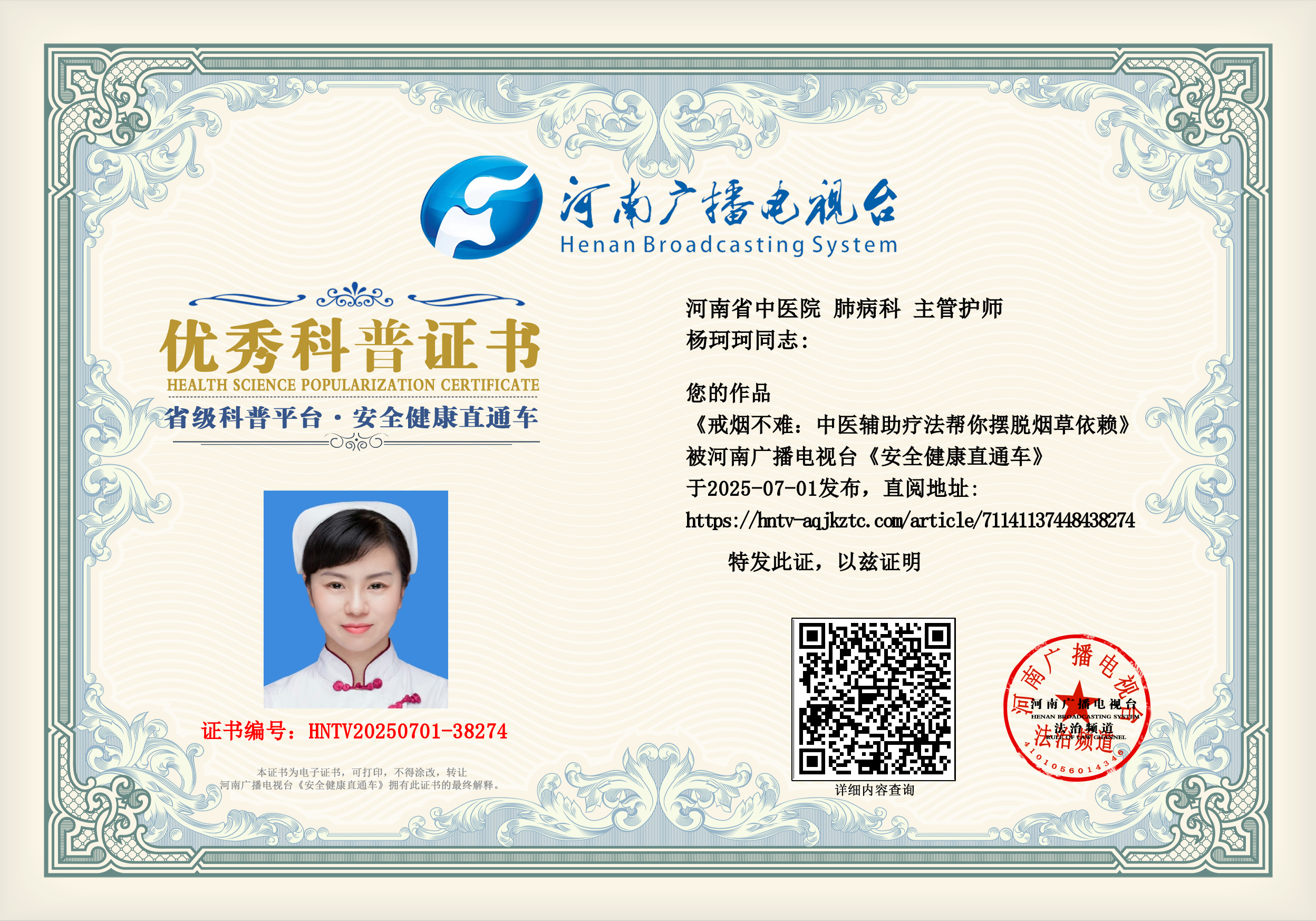 (杨珂珂 河南省中医院 肺病科 主管护师)