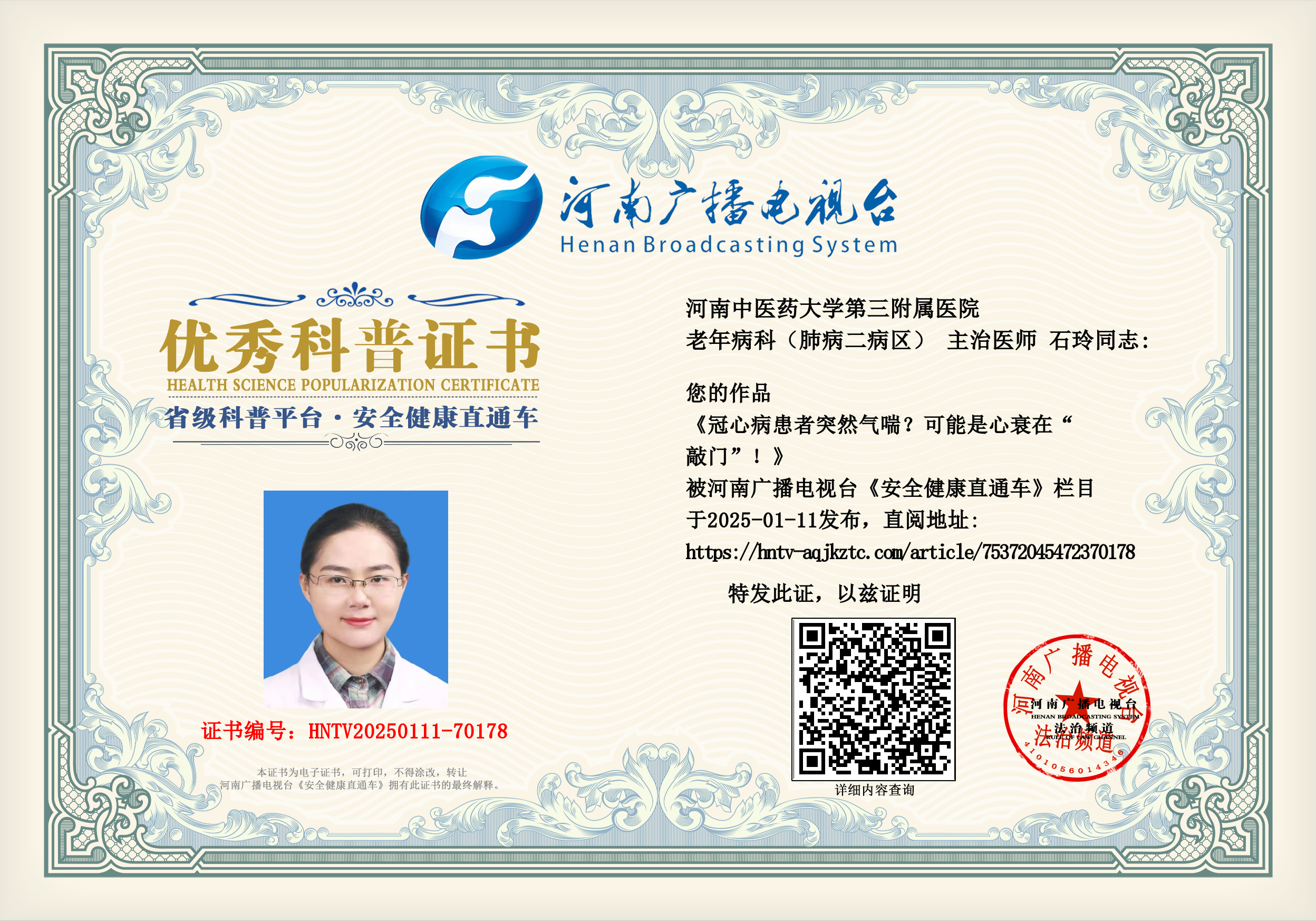 (石玲 河南中医药大学第三附属医院 老年病科(肺病二病区) 主治医师)