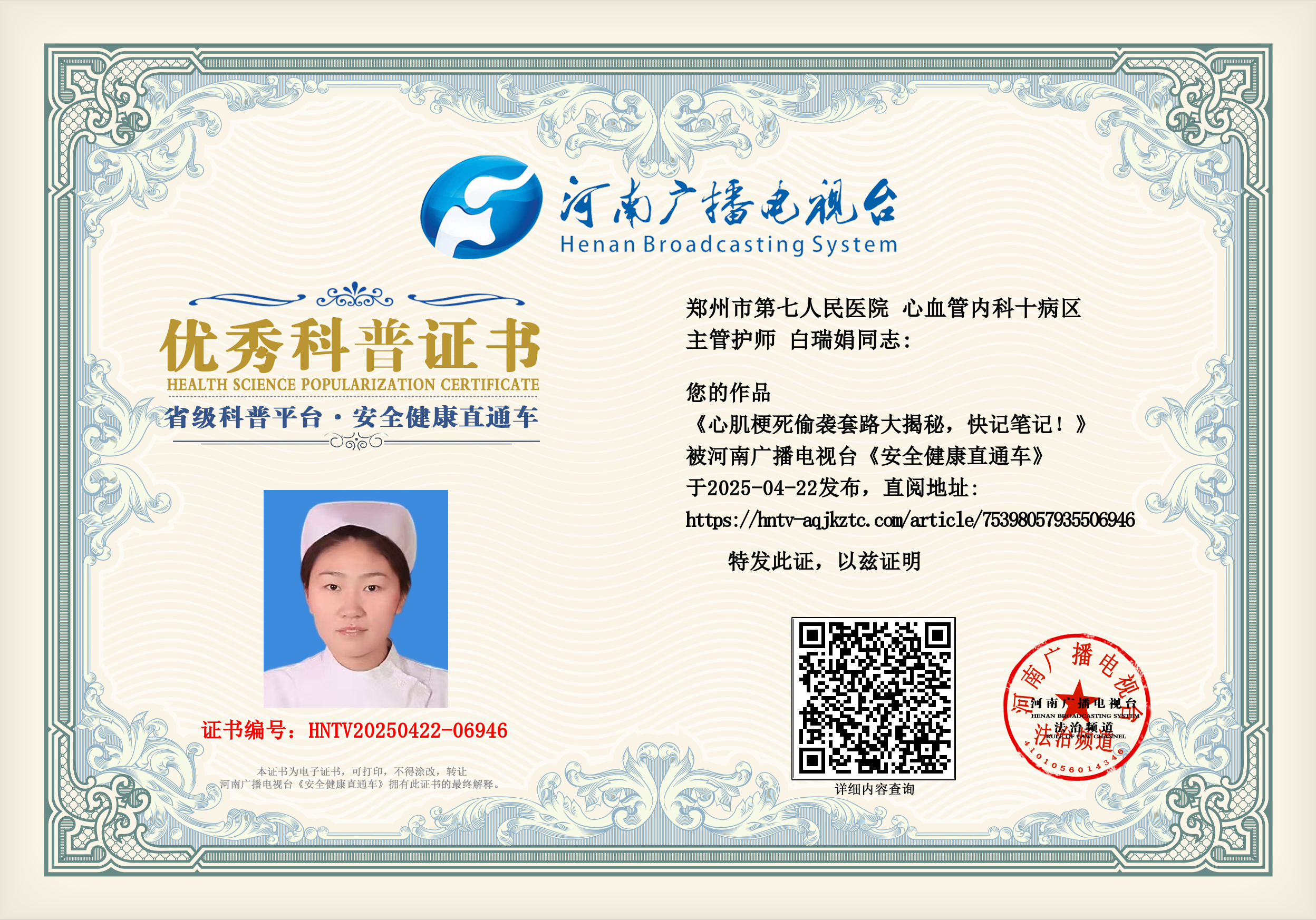 (白瑞娟 郑州市第七人民医院 心血管内科十病区 主管护师)