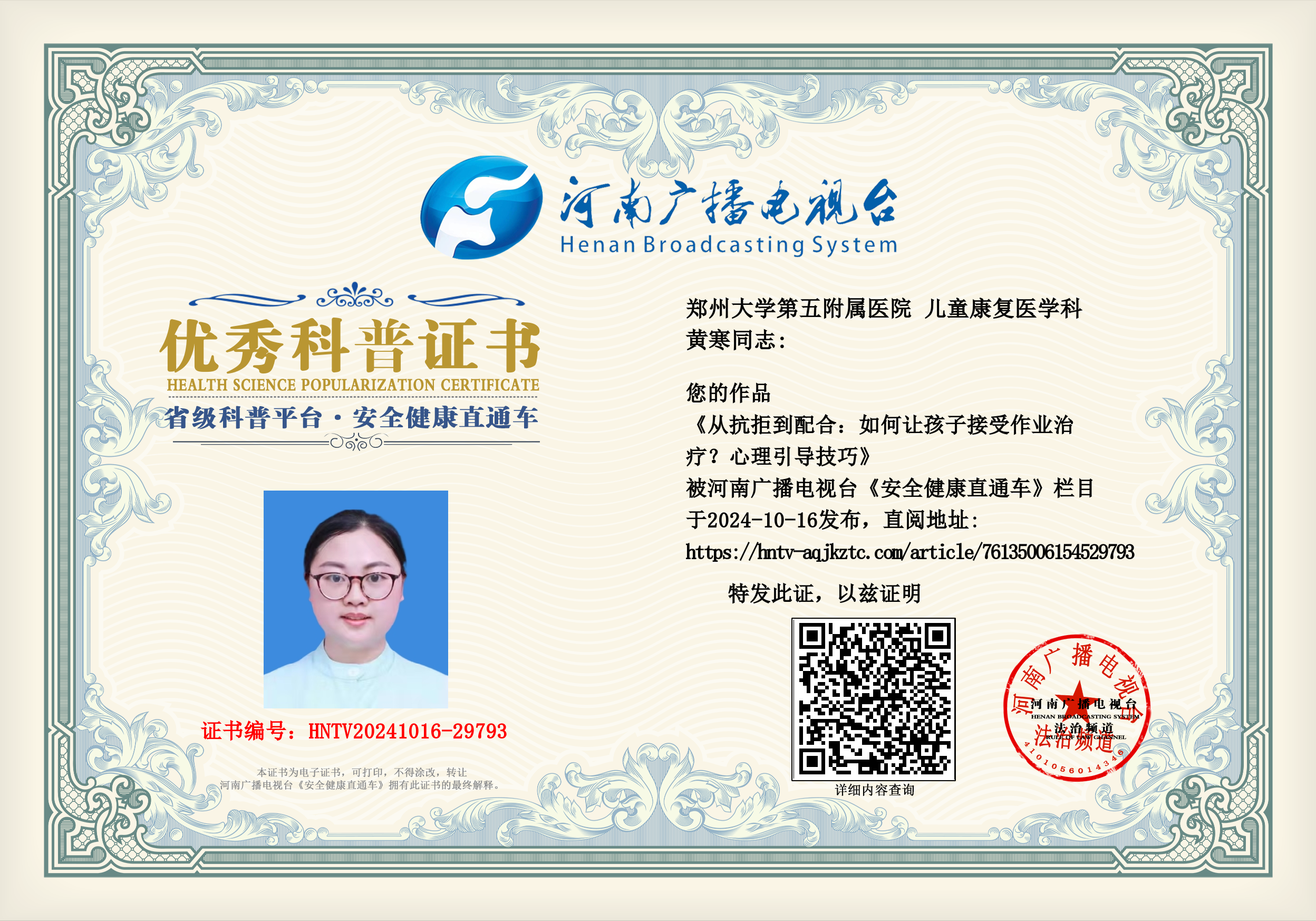 (黄寒 郑州大学第五附属医院 儿童康复医学科)