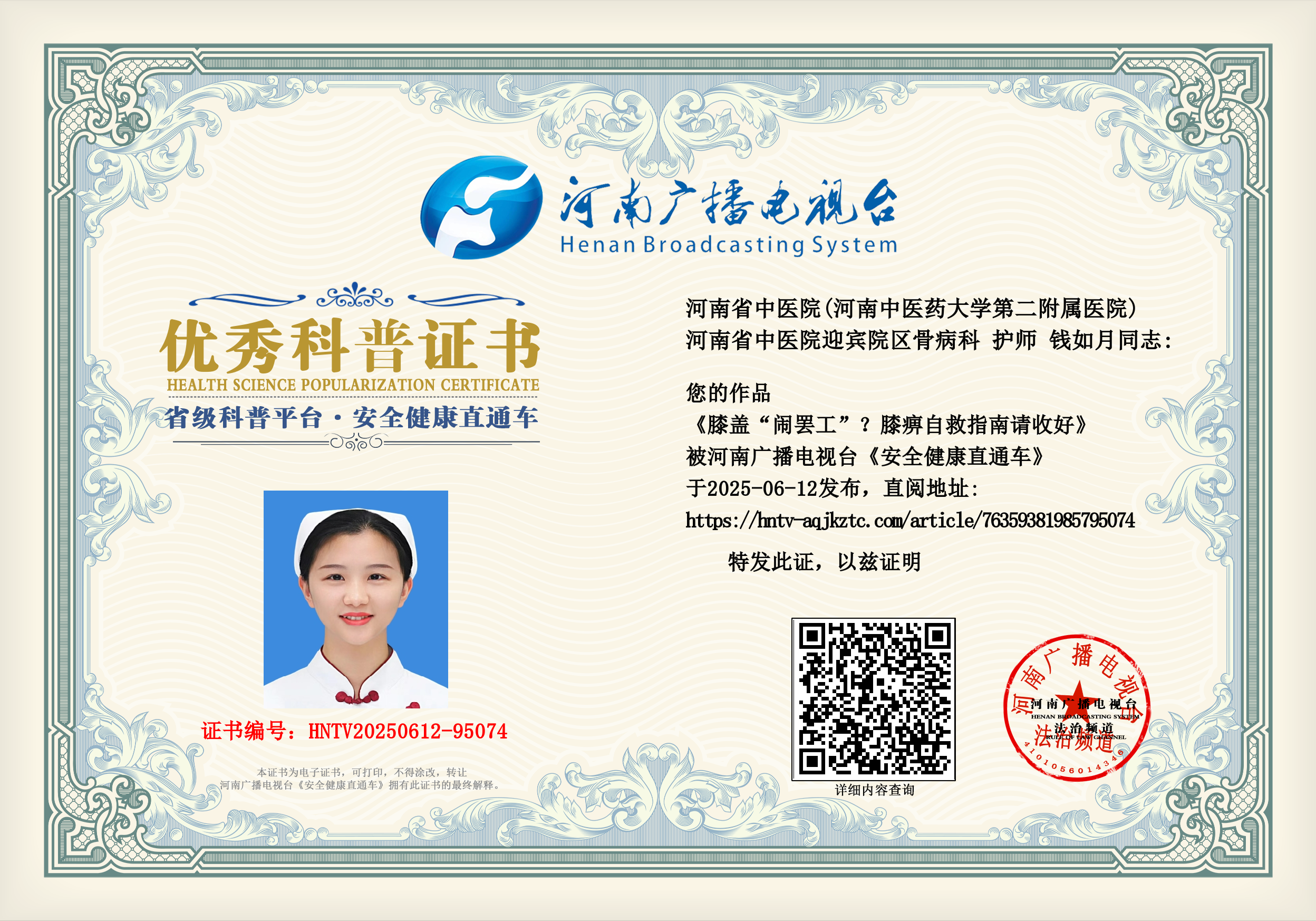 (钱如月 河南省中医院(河南中医药大学第二附属医院) 河南省中医院迎宾院区骨病科 护师)