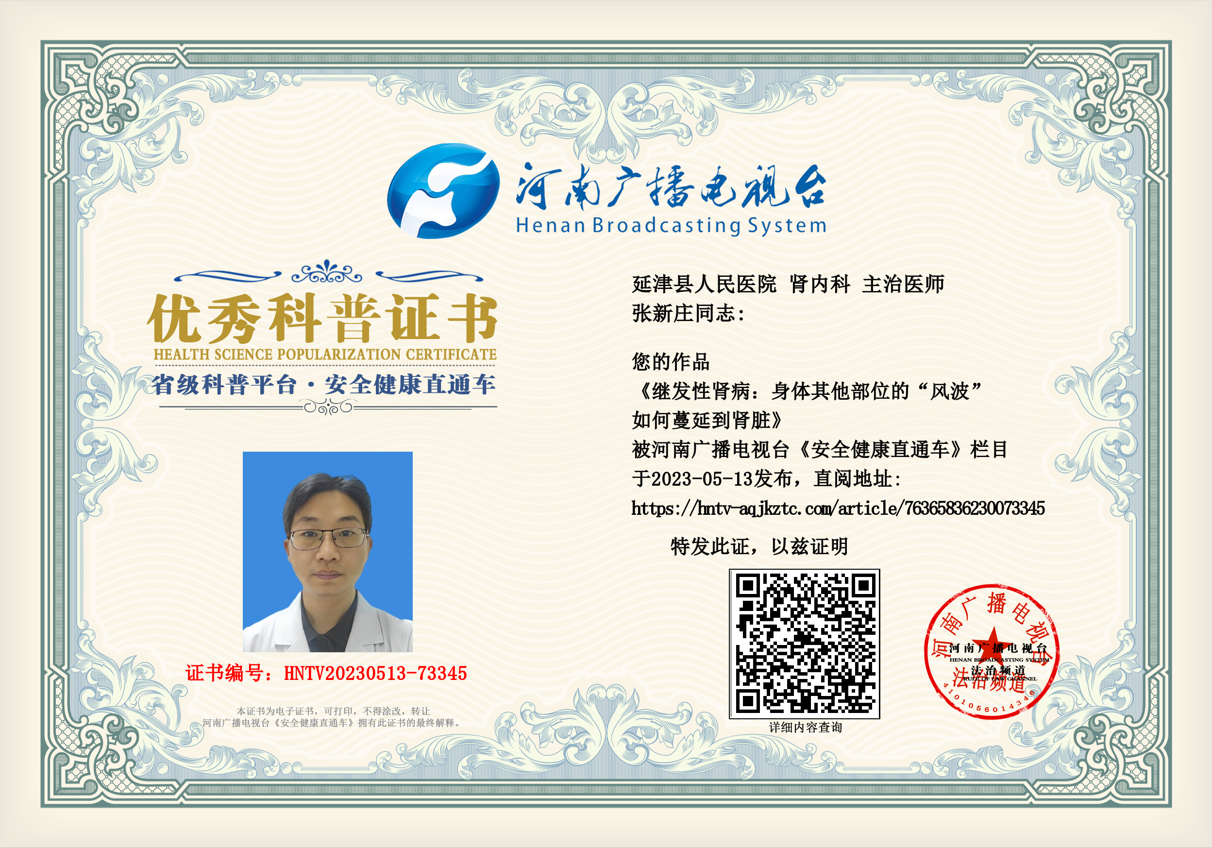 (张新庄 延津县人民医院 肾内科 主治医师)