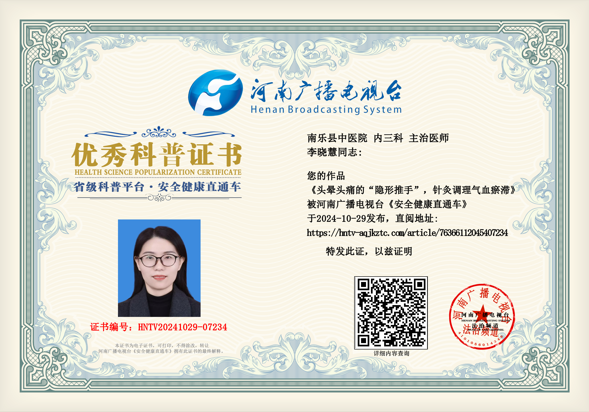 (李晓慧 南乐县中医院 内三科 主治医师)
