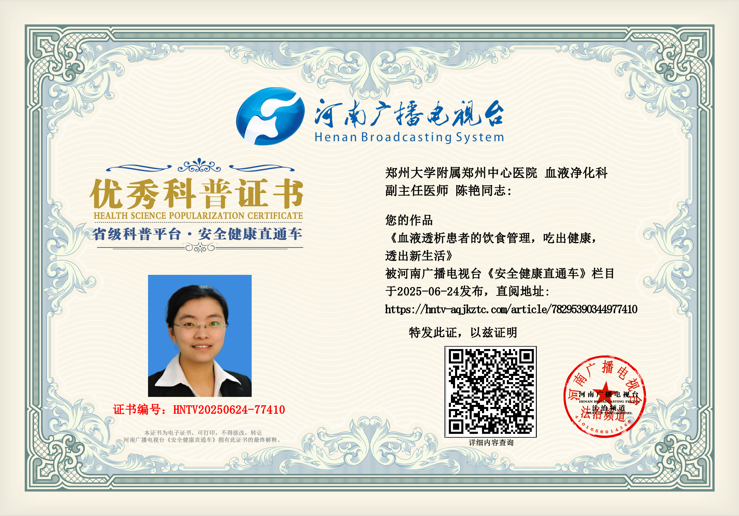 (陈艳 郑州大学附属郑州中心医院 血液净化科 副主任医师)