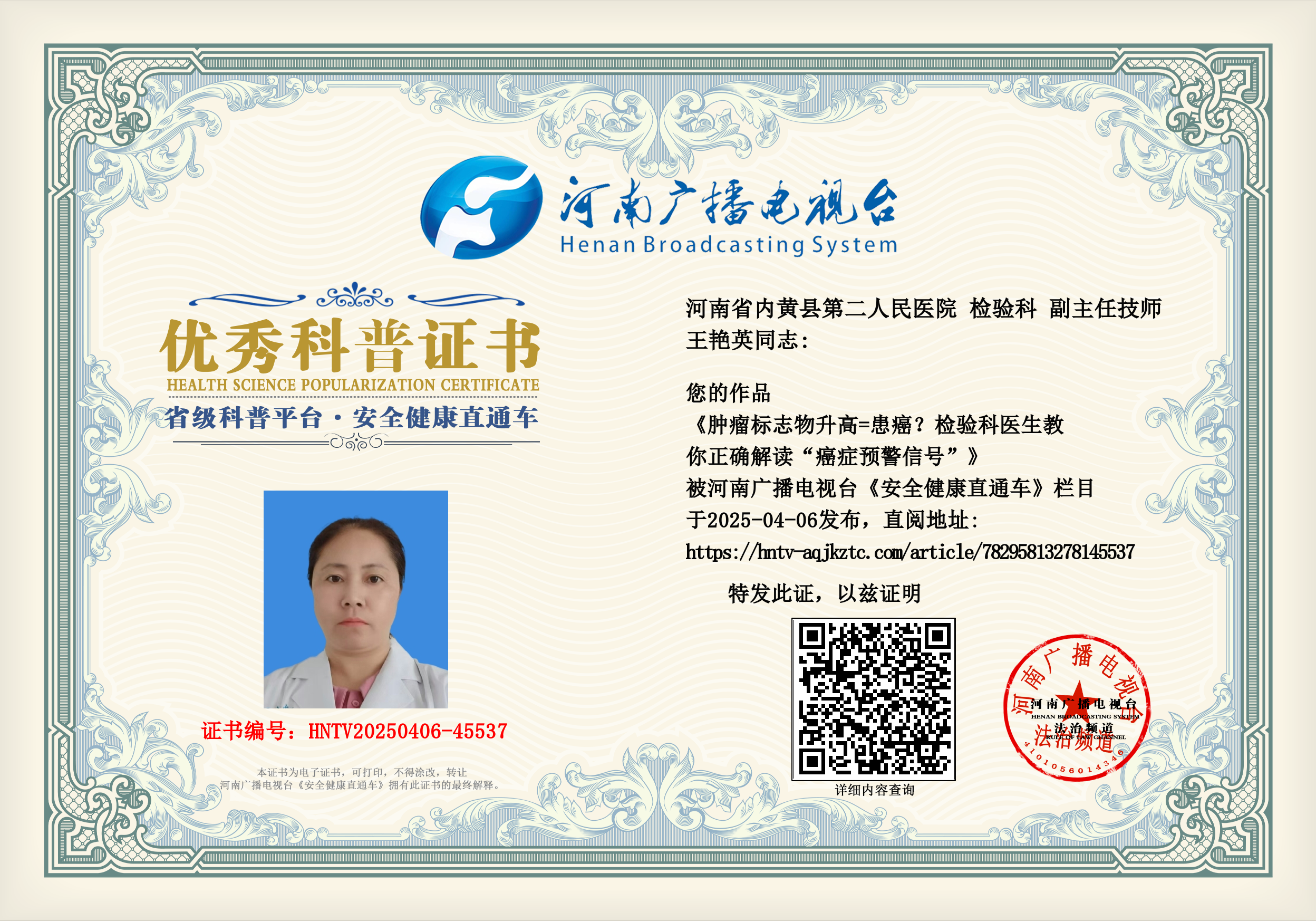 (王艳英 河南省内黄县第二人民医院 检验科 副主任技师)