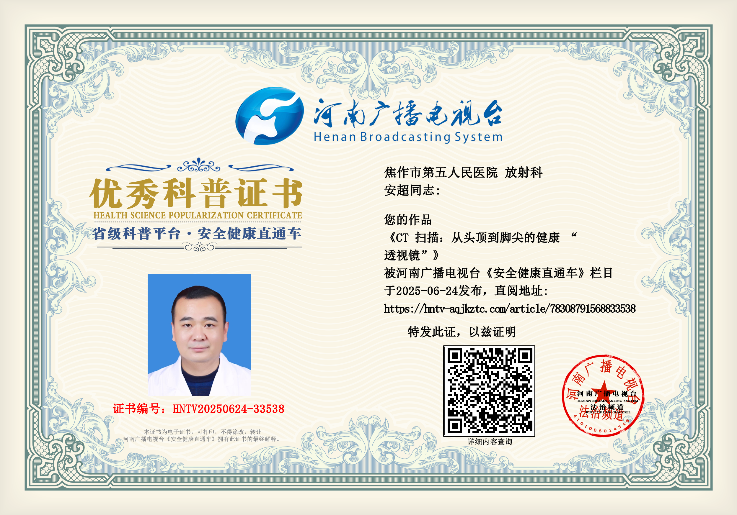 (安超 焦作市第五人民医院 放射科)