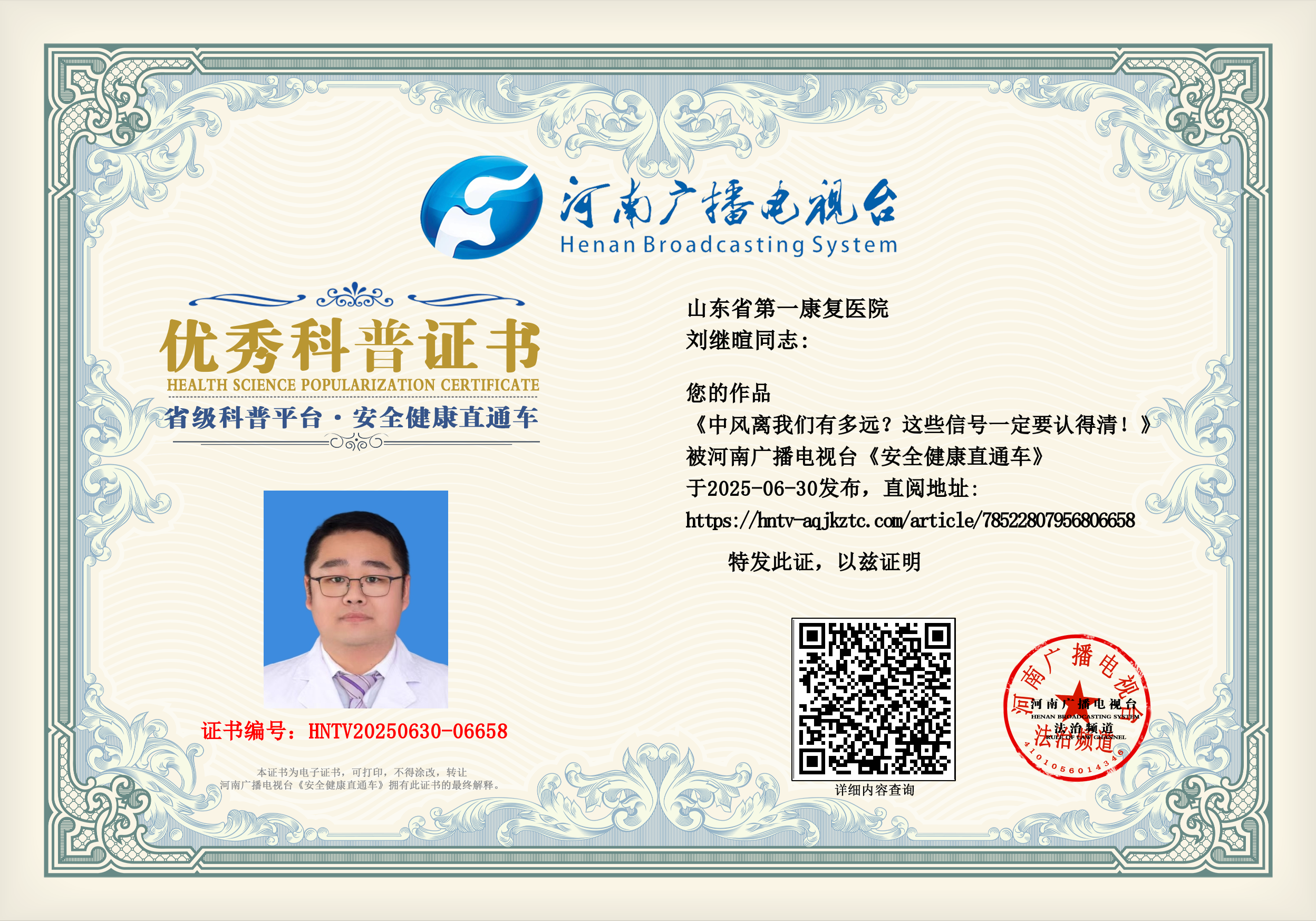(刘继暄 山东省第一康复医院)