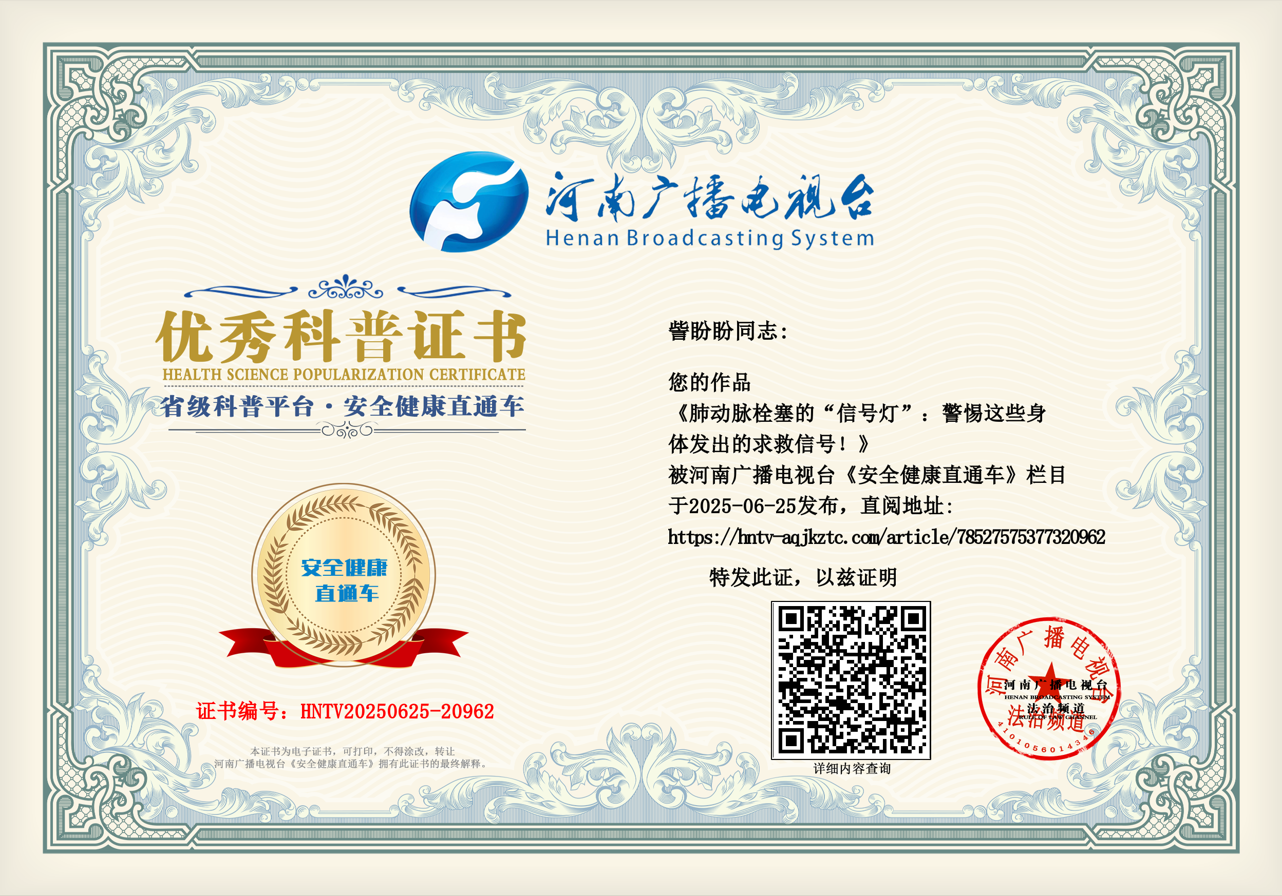 肺动脉栓塞虽然凶险,但只要我们警惕身体发出的这些求救信号,及时就医,进行相关检查,如CT肺动脉造影、D - 二聚体检测等,就能够早期诊断、早期治疗,大大降低疾病的风险。在日常生活中,我们也要注意预防,避免长时间久坐不动,适当运动,促进血液循环,保持健康的生活方式。让我们时刻关注身体的“信号灯”,守护自己的健康。