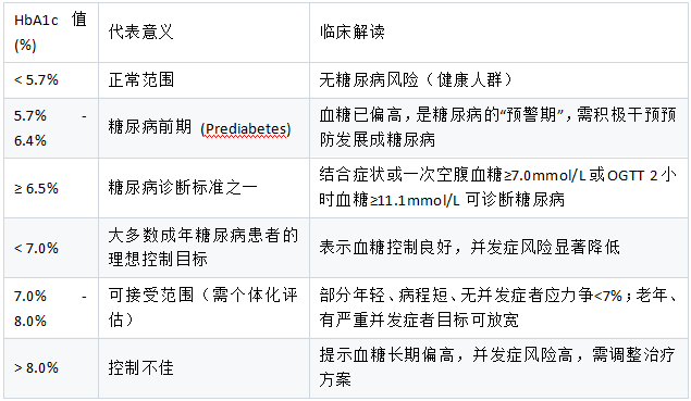 预测并发症风险:大量研究证实,HbA1c水平与糖尿病并发症(如眼病、肾病、神经病变、心脑血管疾病)的发生风险直接相关。HbA1c越高,风险越大。