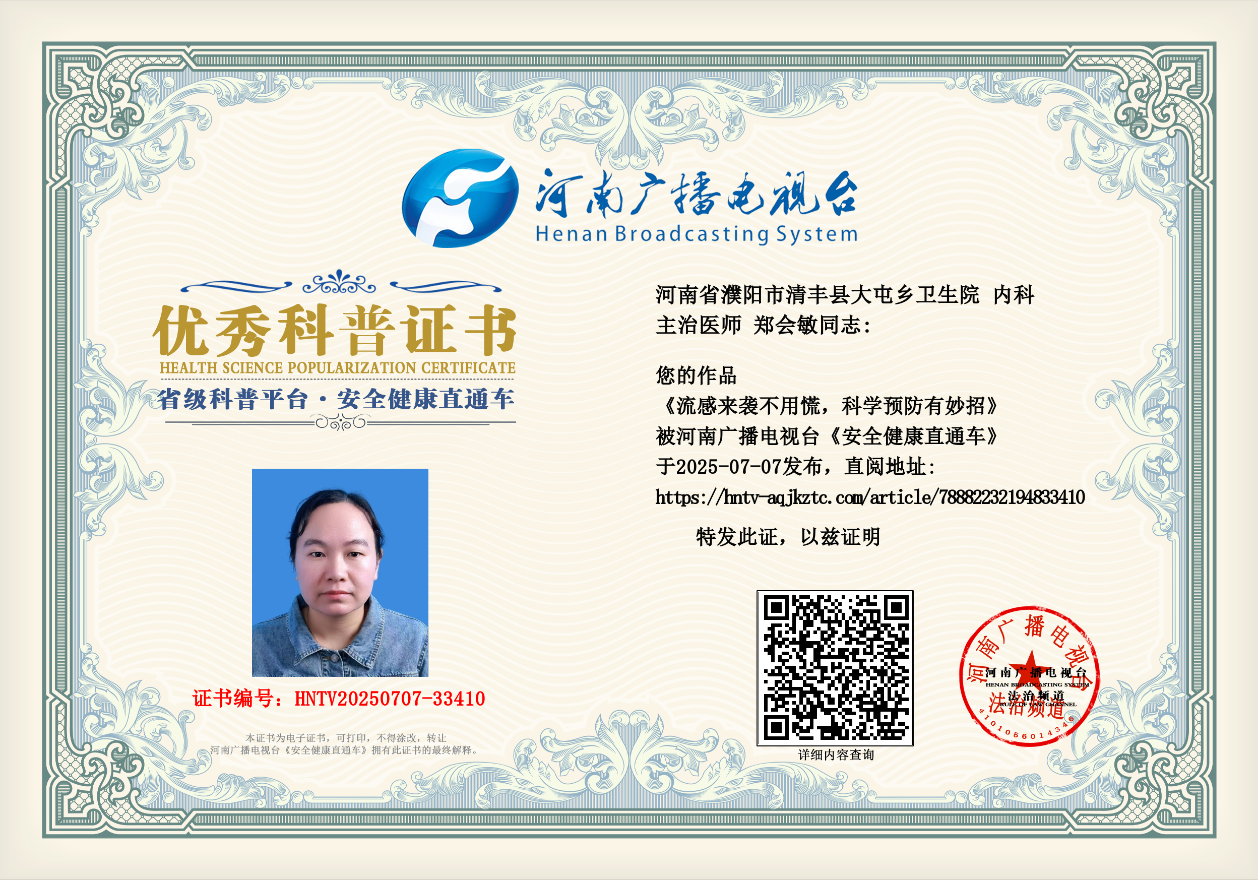 (郑会敏 河南省濮阳市清丰县大屯乡卫生院 内科 主治医师)