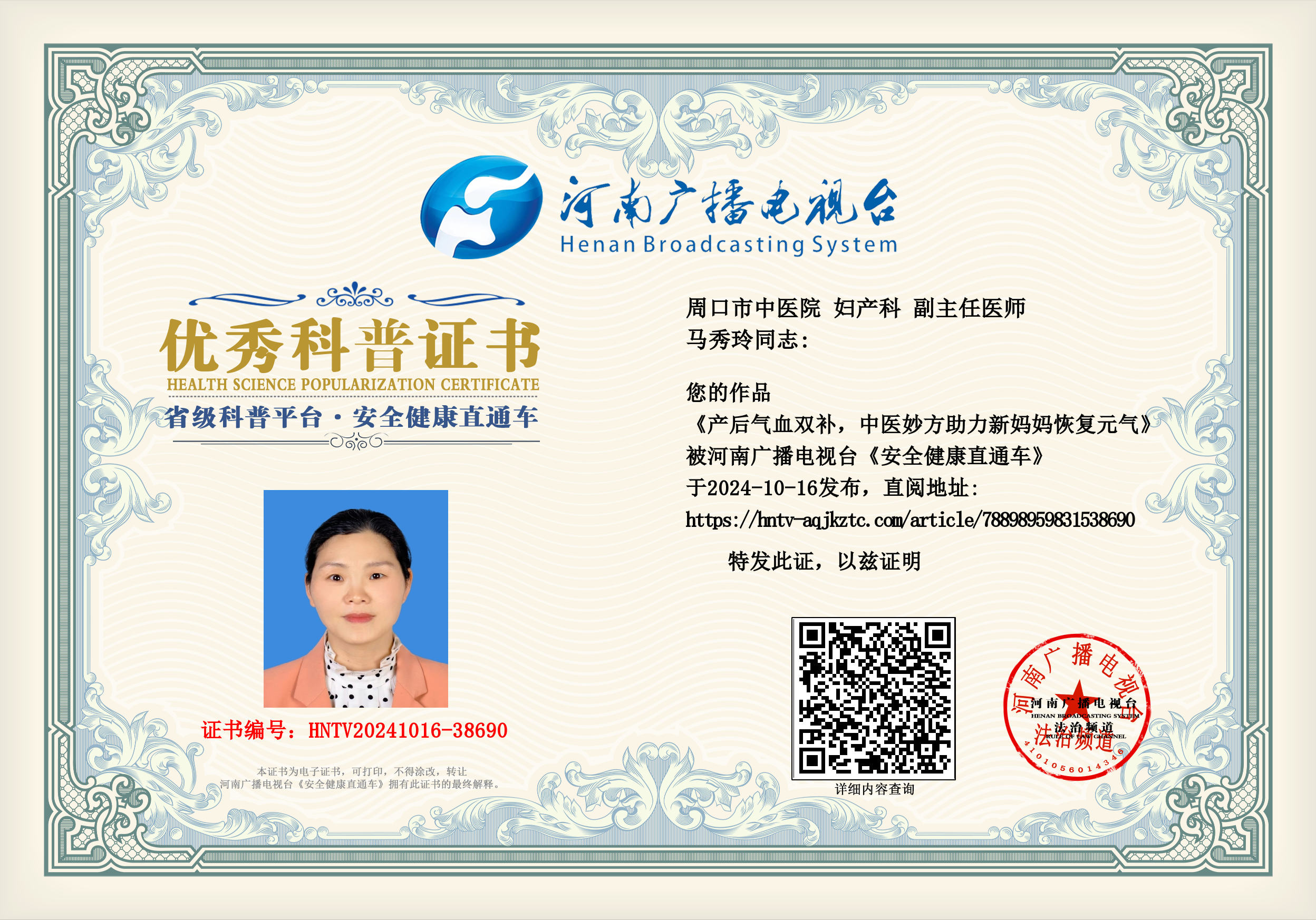 (马秀玲 周口市中医院 妇产科 副主任医师)