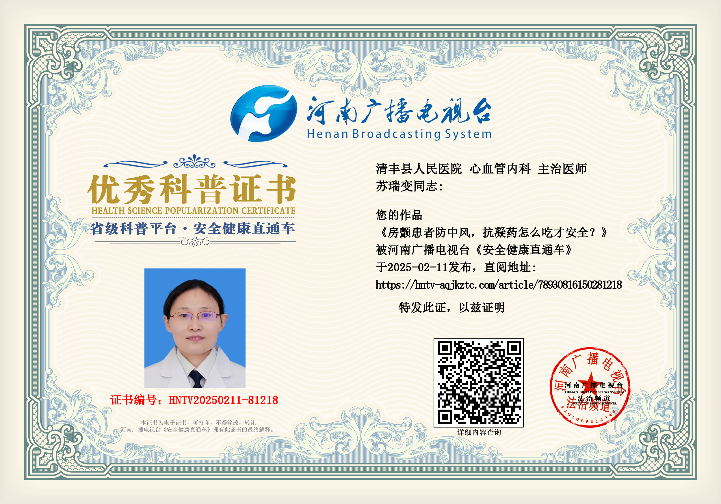 (苏瑞变 清丰县人民医院 心血管内科 主治医师)