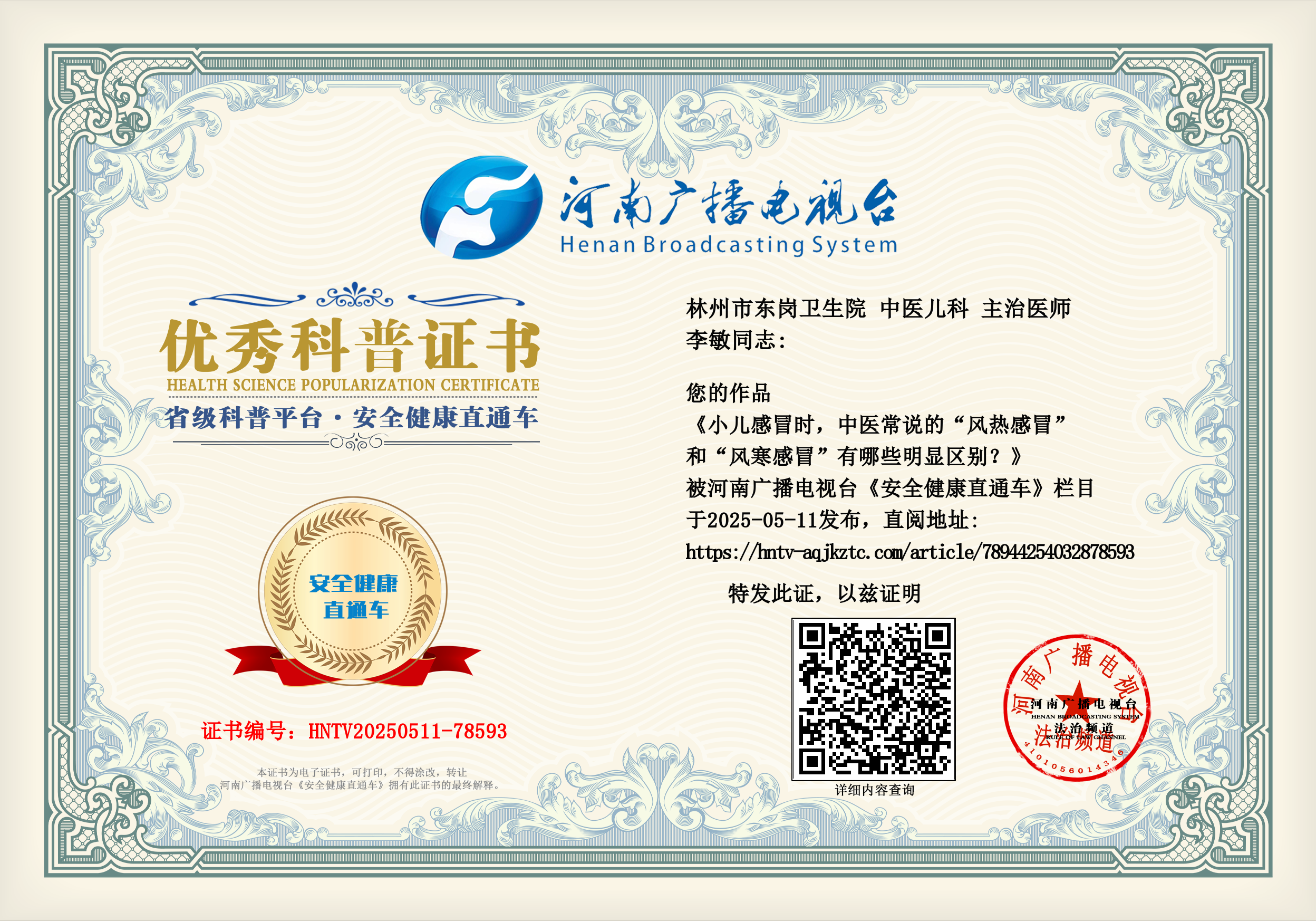 (李敏 林州市东岗卫生院 中医儿科 主治医师)