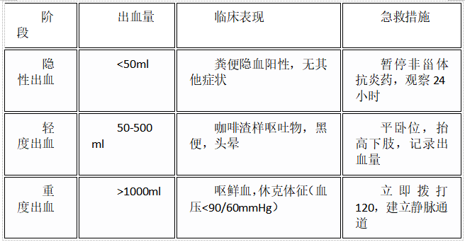 咖啡渣样呕吐物:每100ml含血红蛋白约12g