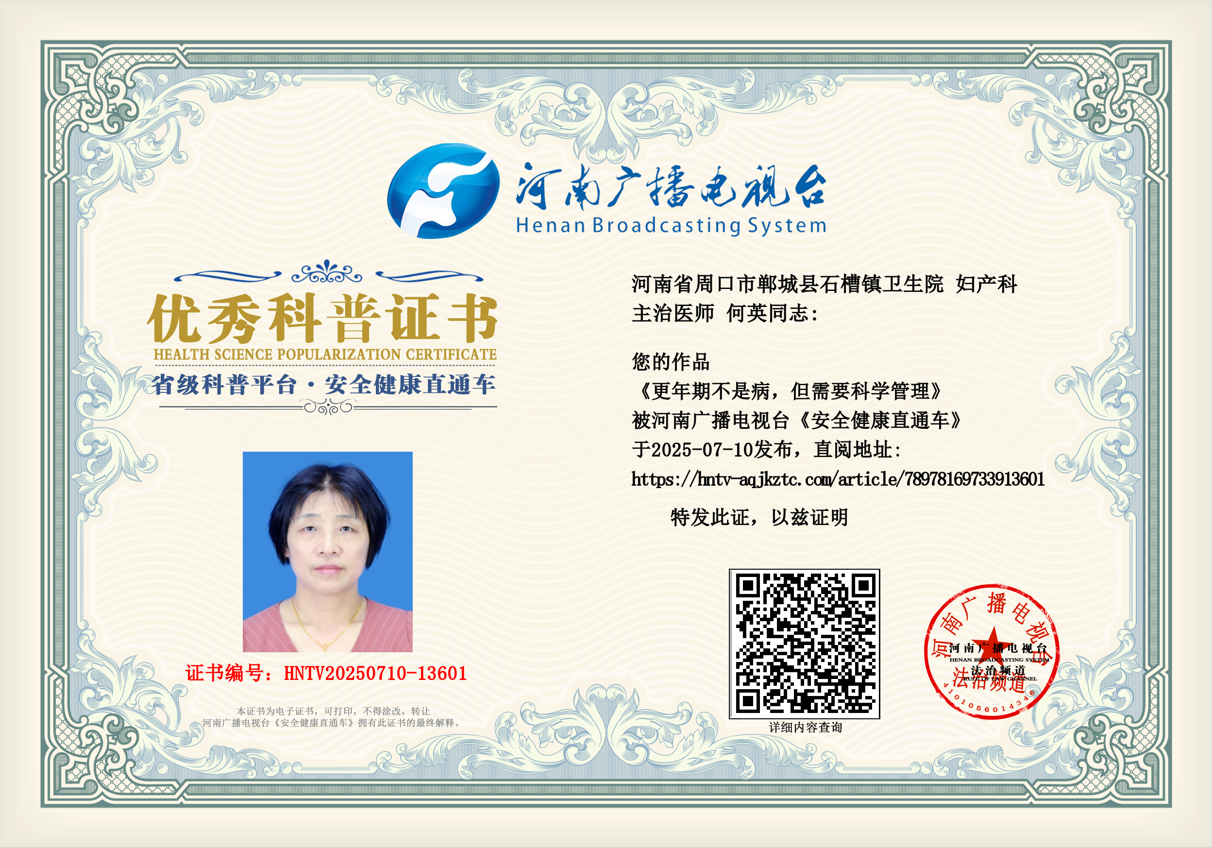(何英 河南省周口市郸城县石槽镇卫生院 妇产科 主治医师)