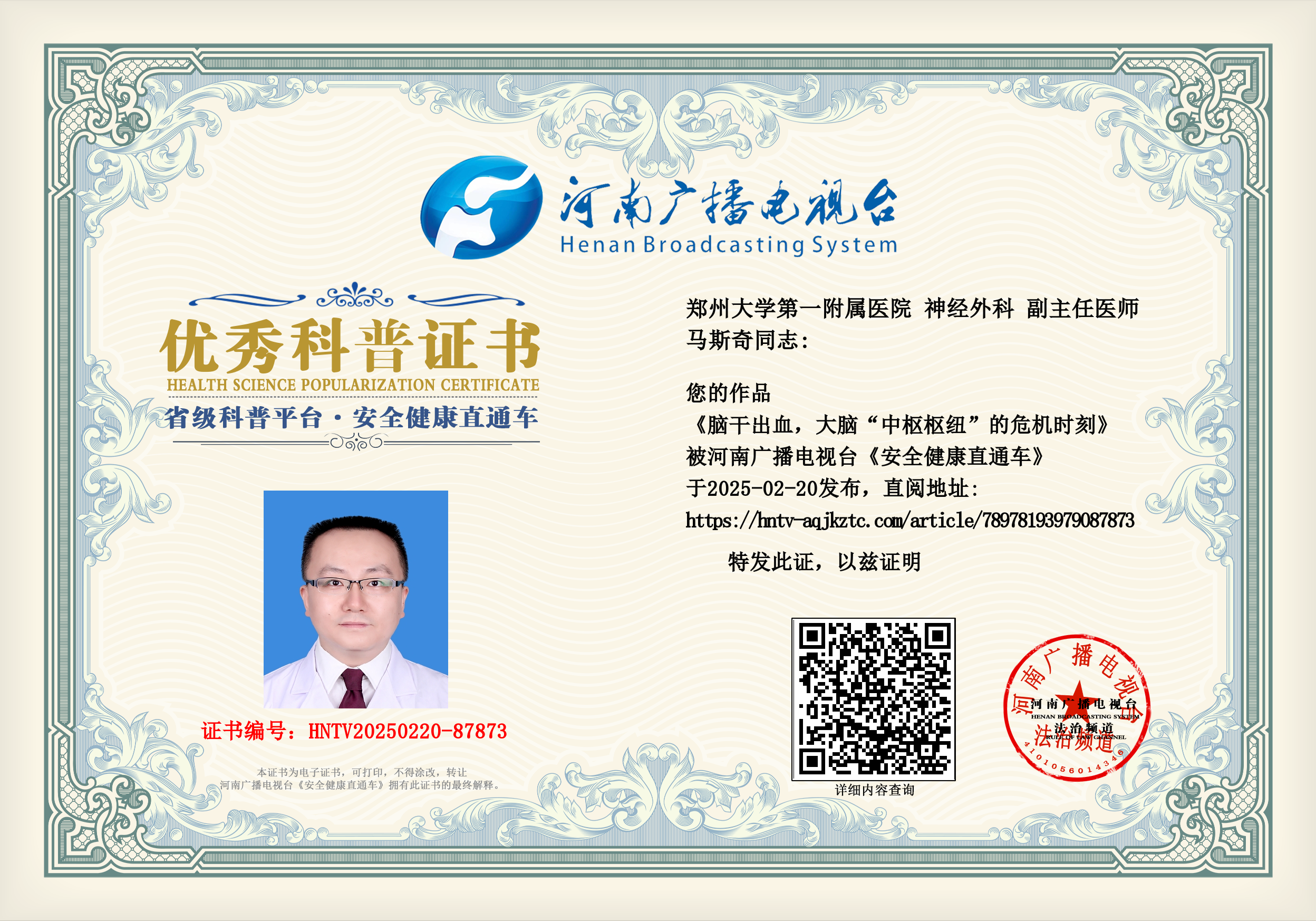 (马斯奇 郑州大学第一附属医院 神经外科 副主任医师)