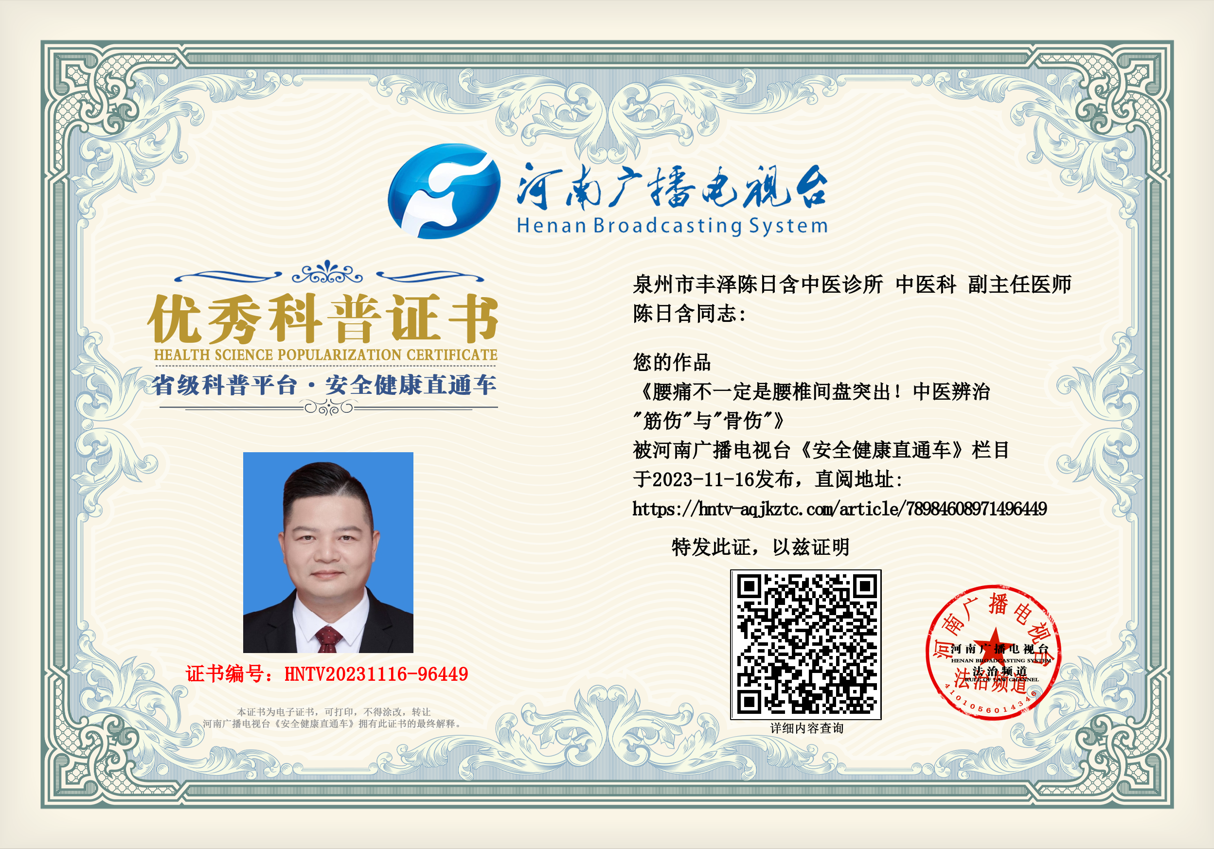 (陈日含 泉州市丰泽陈日含中医诊所 中医科 副主任医师)