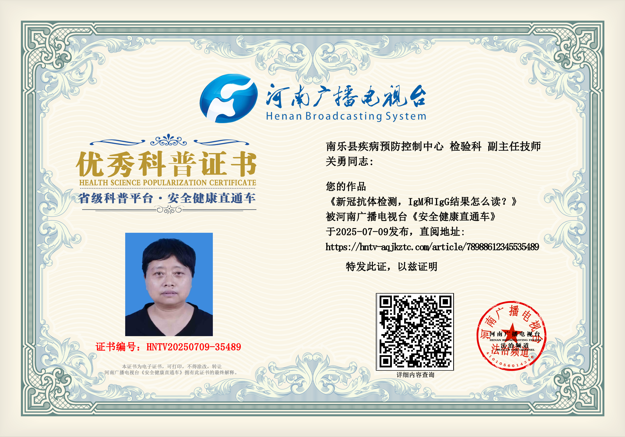 (关勇 南乐县疾病预防控制中心 检验科 副主任技师)