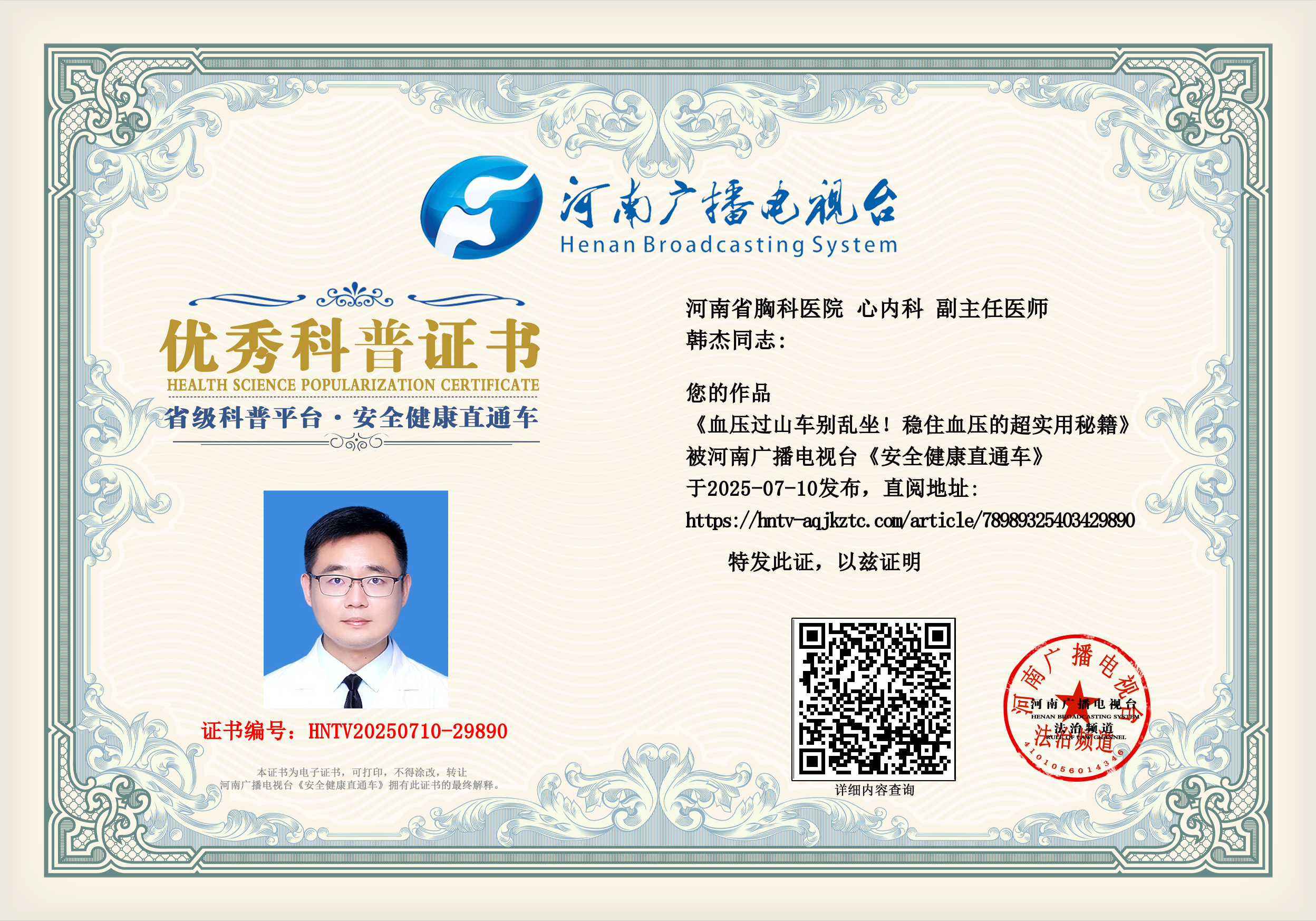 (韩杰 河南省胸科医院 心内科 副主任医师)