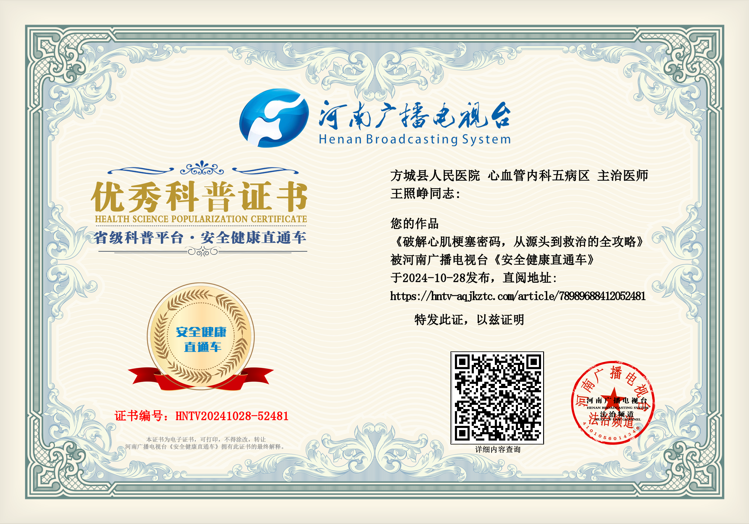 (王照峥 方城县人民医院 心血管内科五病区 主治医师)