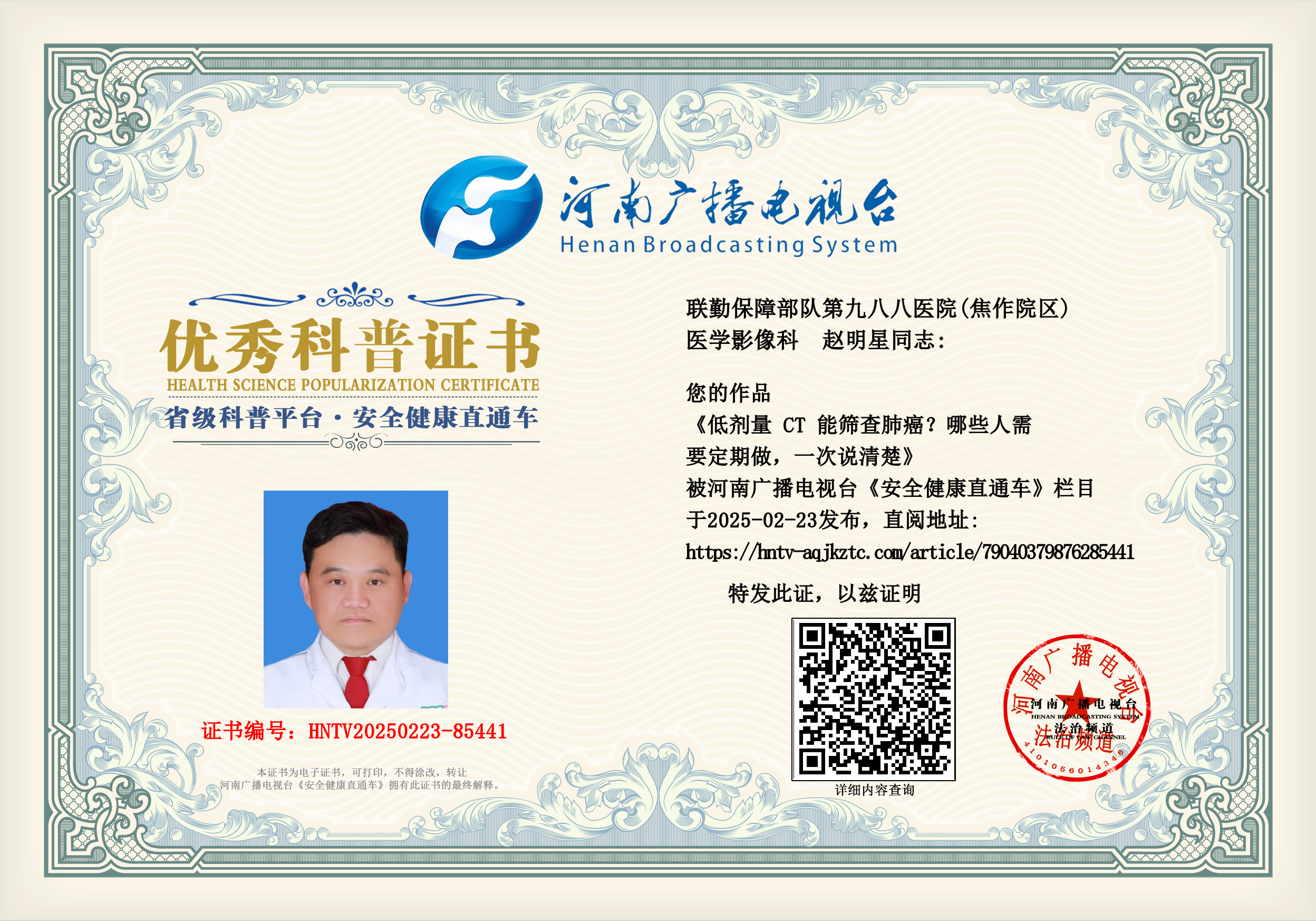 (赵明星 联勤保障部队第九八八医院(焦作院区) 医学影像科)
