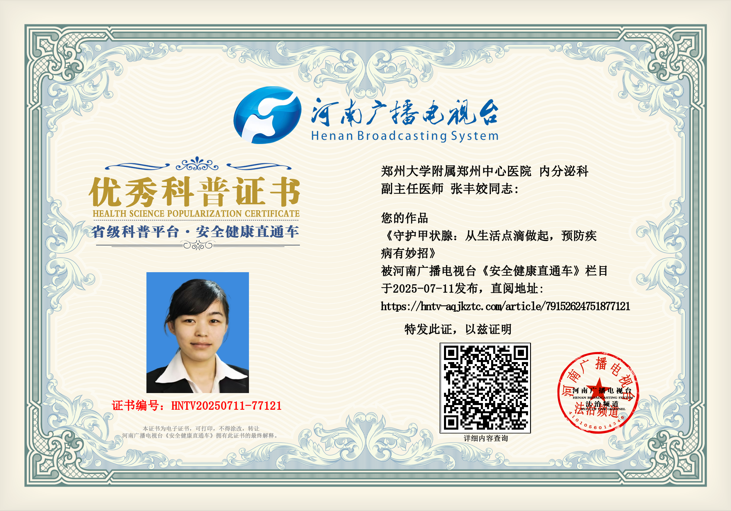 (张丰姣 郑州大学附属郑州中心医院 内分泌科 副主任医师)