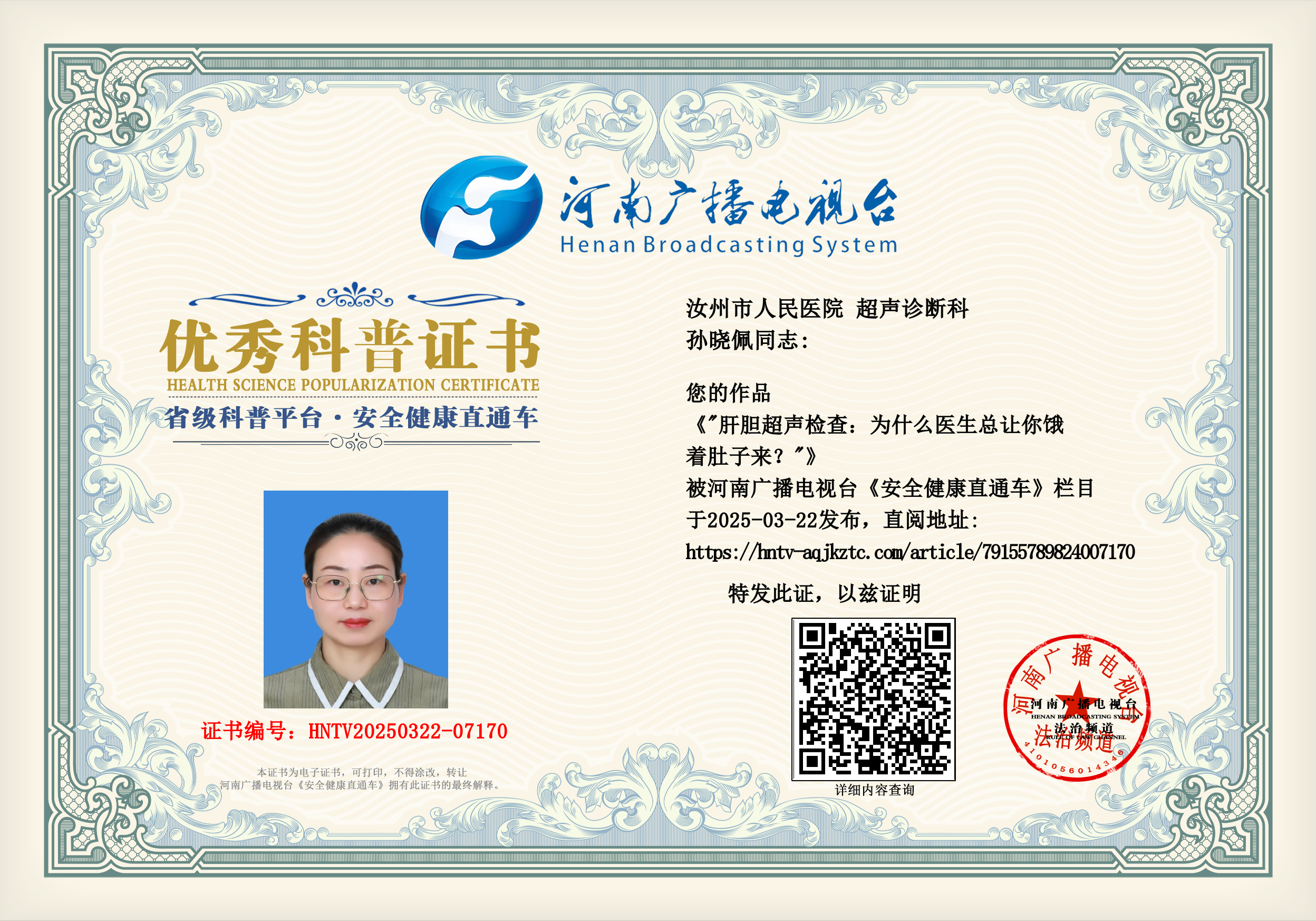 (孙晓佩 汝州市人民医院 超声诊断科)