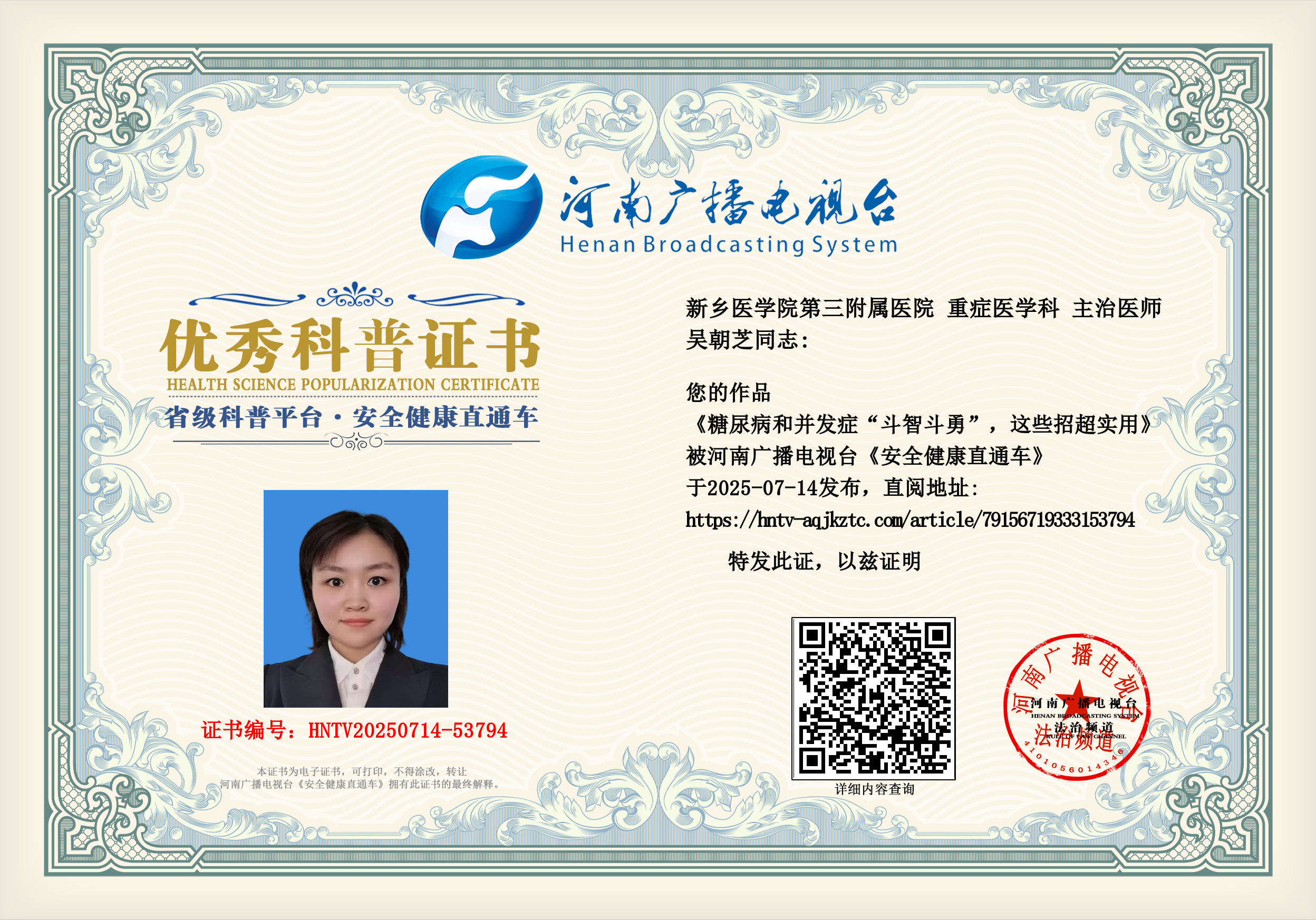 (吴朝芝 新乡医学院第三附属医院 重症医学科 主治医师)