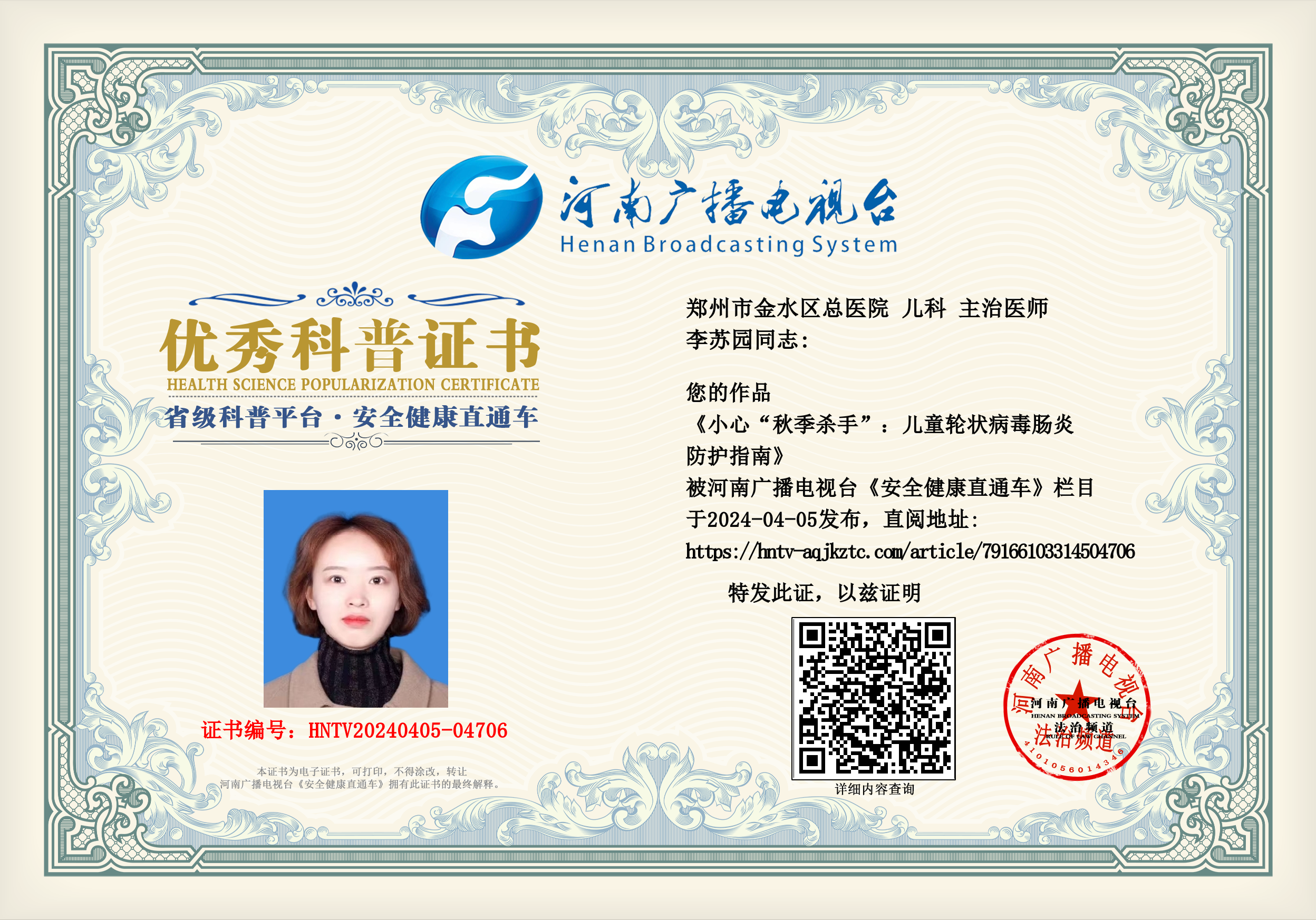 (李苏园 郑州市金水区总医院 儿科 主治医师)
