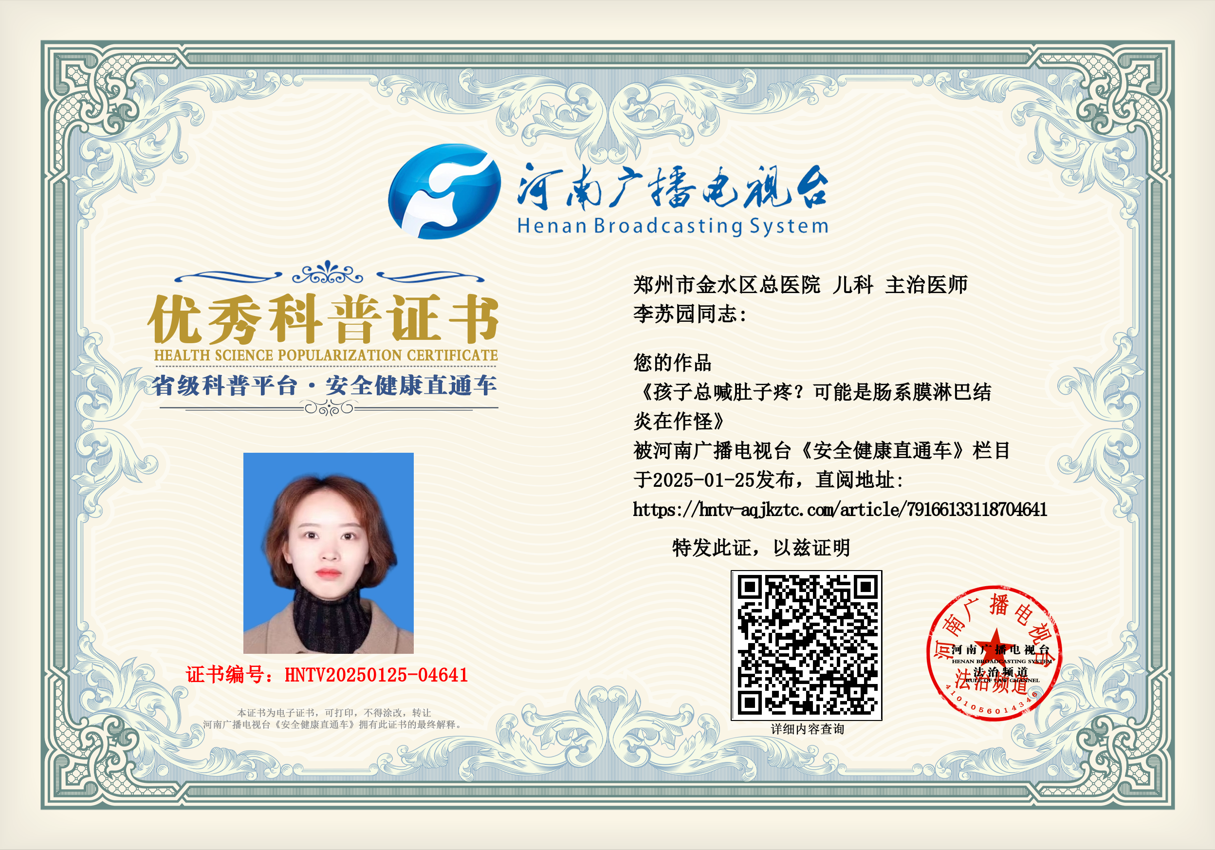 (李苏园 郑州市金水区总医院 儿科 主治医师)