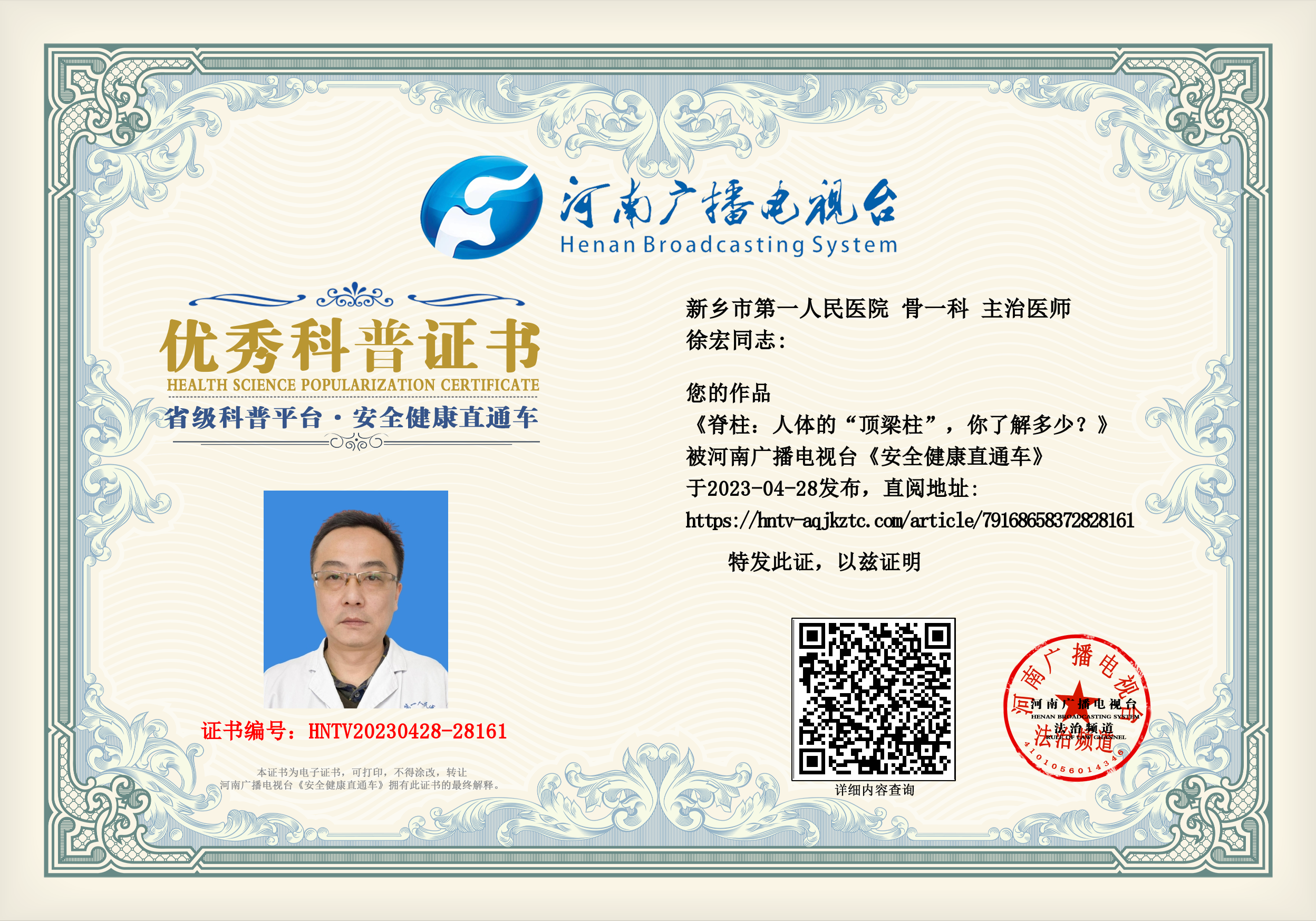 (徐宏 新乡市第一人民医院 骨一科 主治医师)