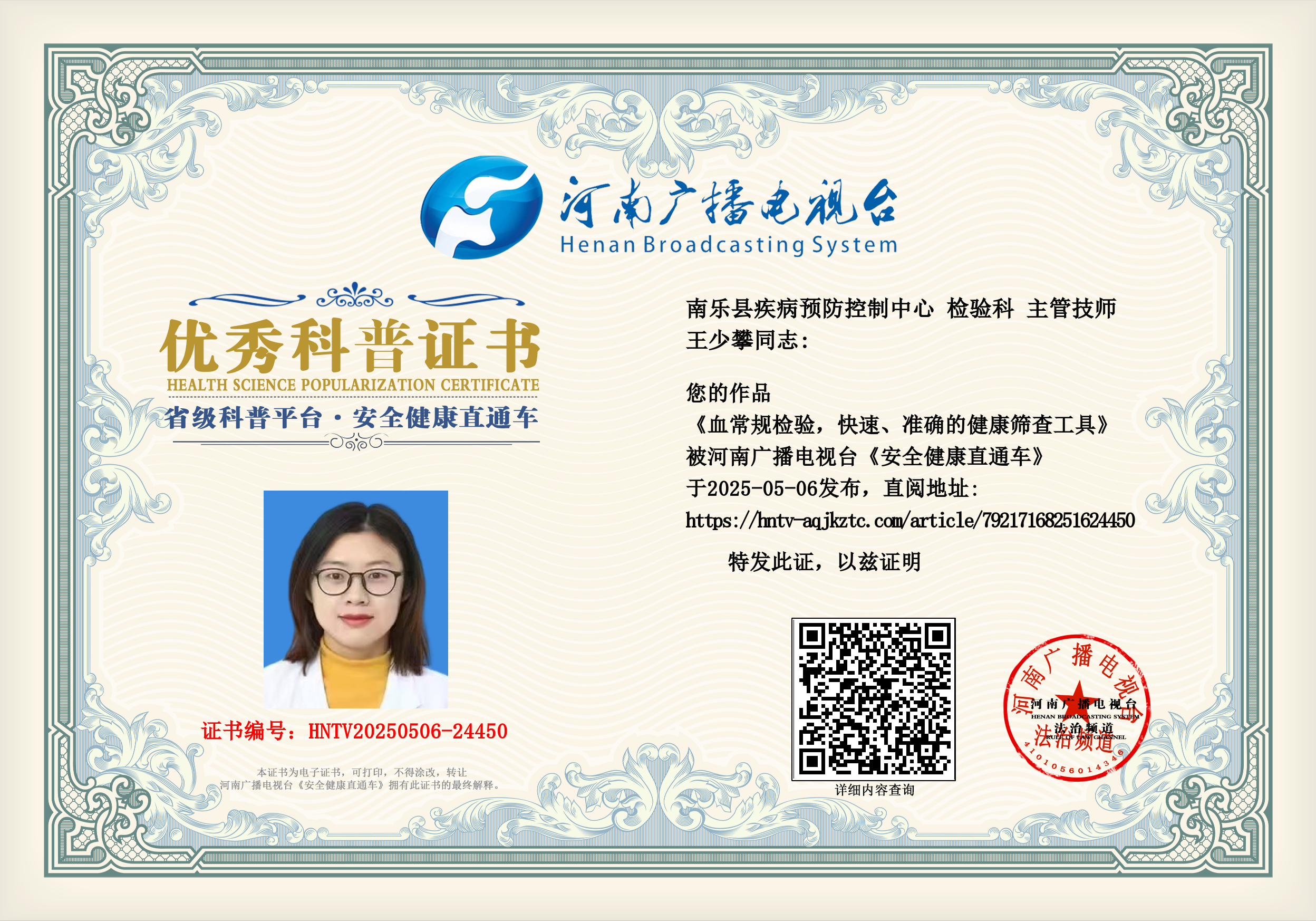 (王少攀 南乐县疾病预防控制中心 检验科 主管技师)