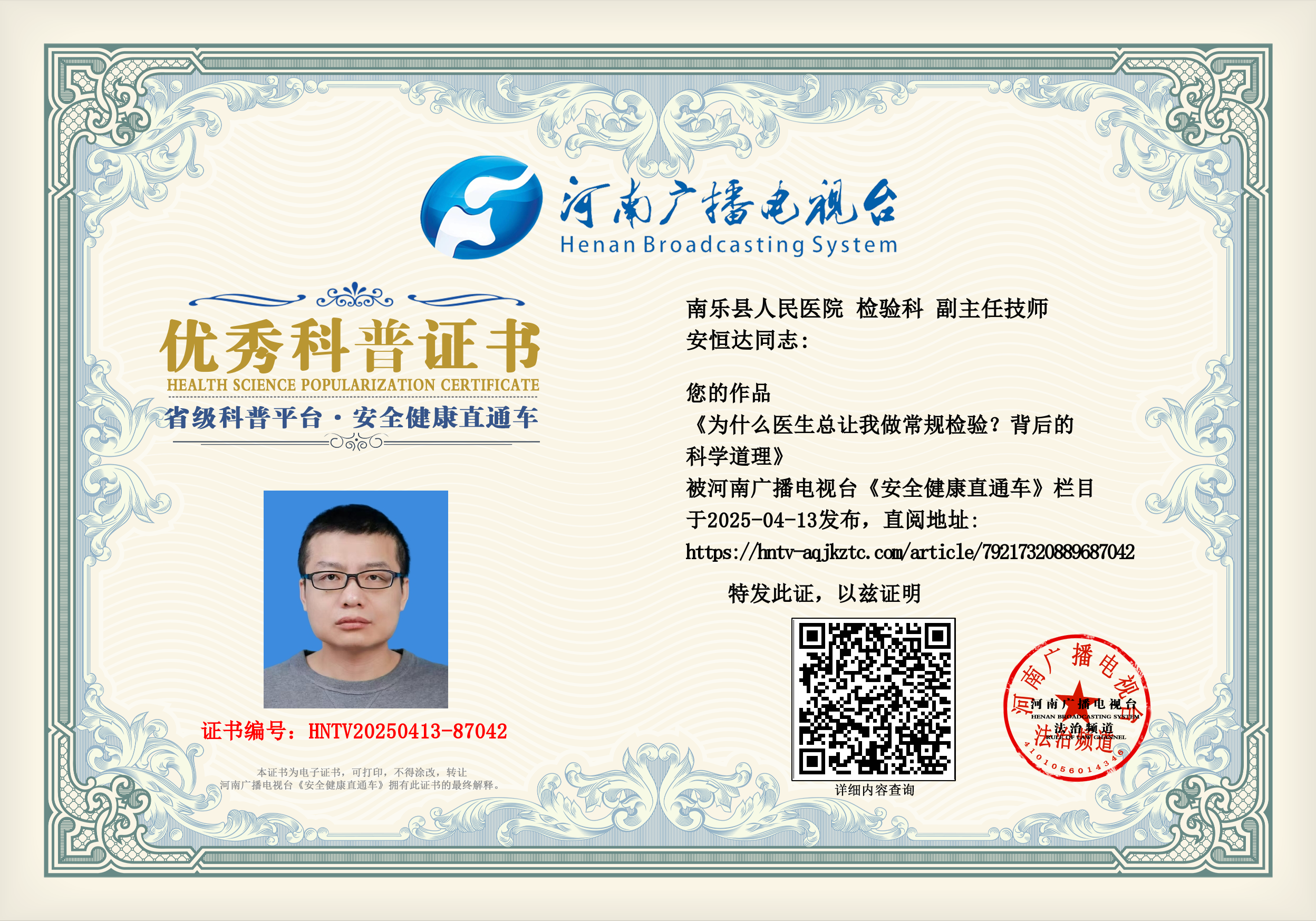(安恒达 南乐县人民医院 检验科 副主任技师)