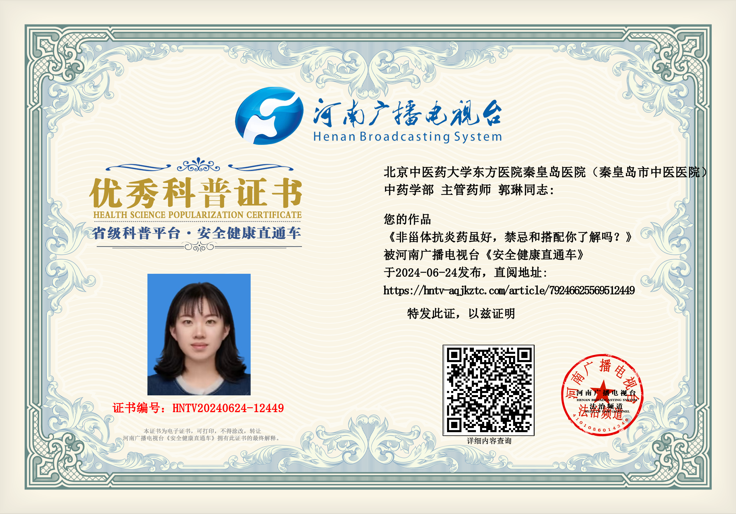 (郭琳 北京中医药大学东方医院秦皇岛医院(秦皇岛市中医医院) 中药学部 主管药师)