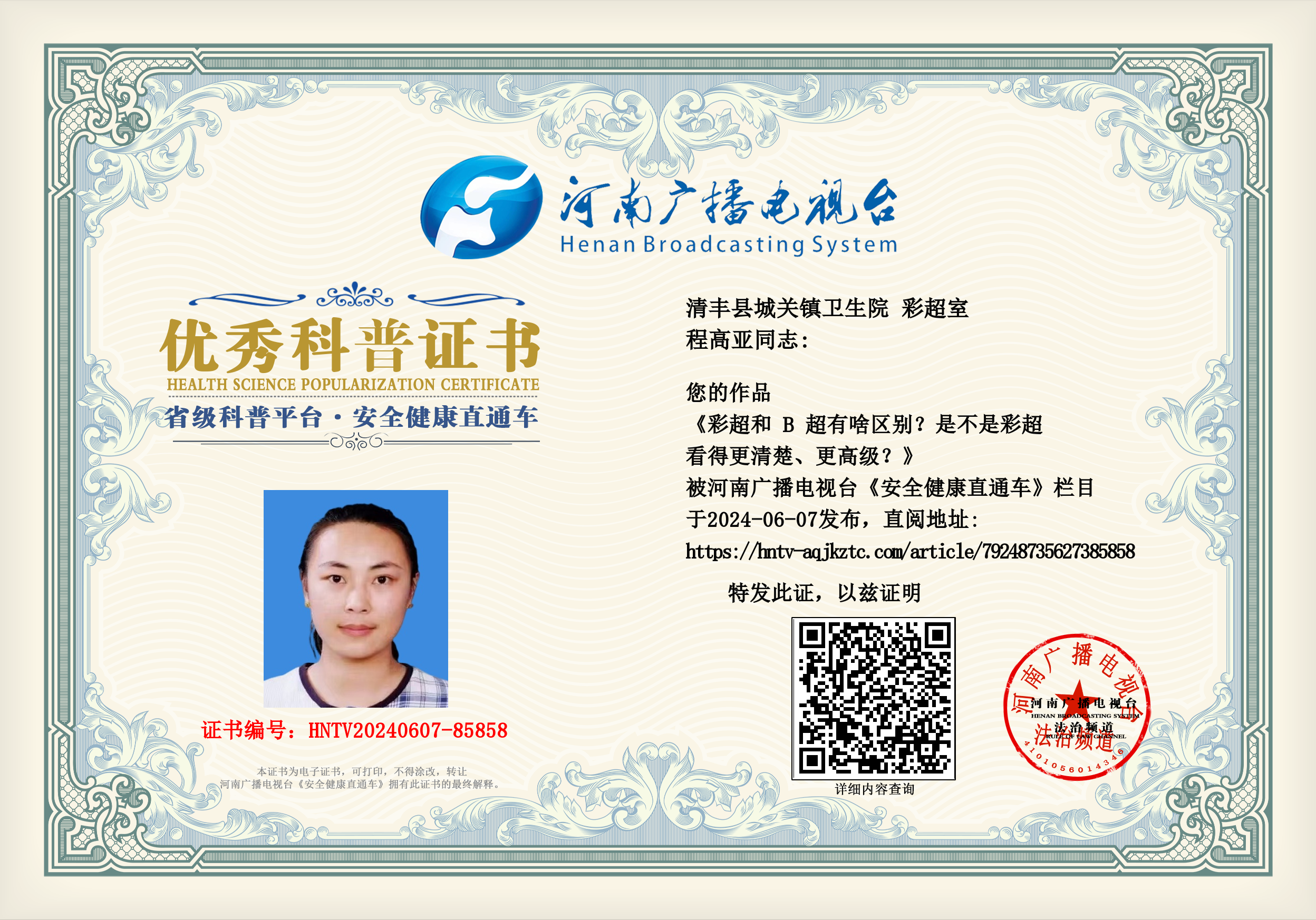 (程高亚 清丰县城关镇卫生院 彩超室)