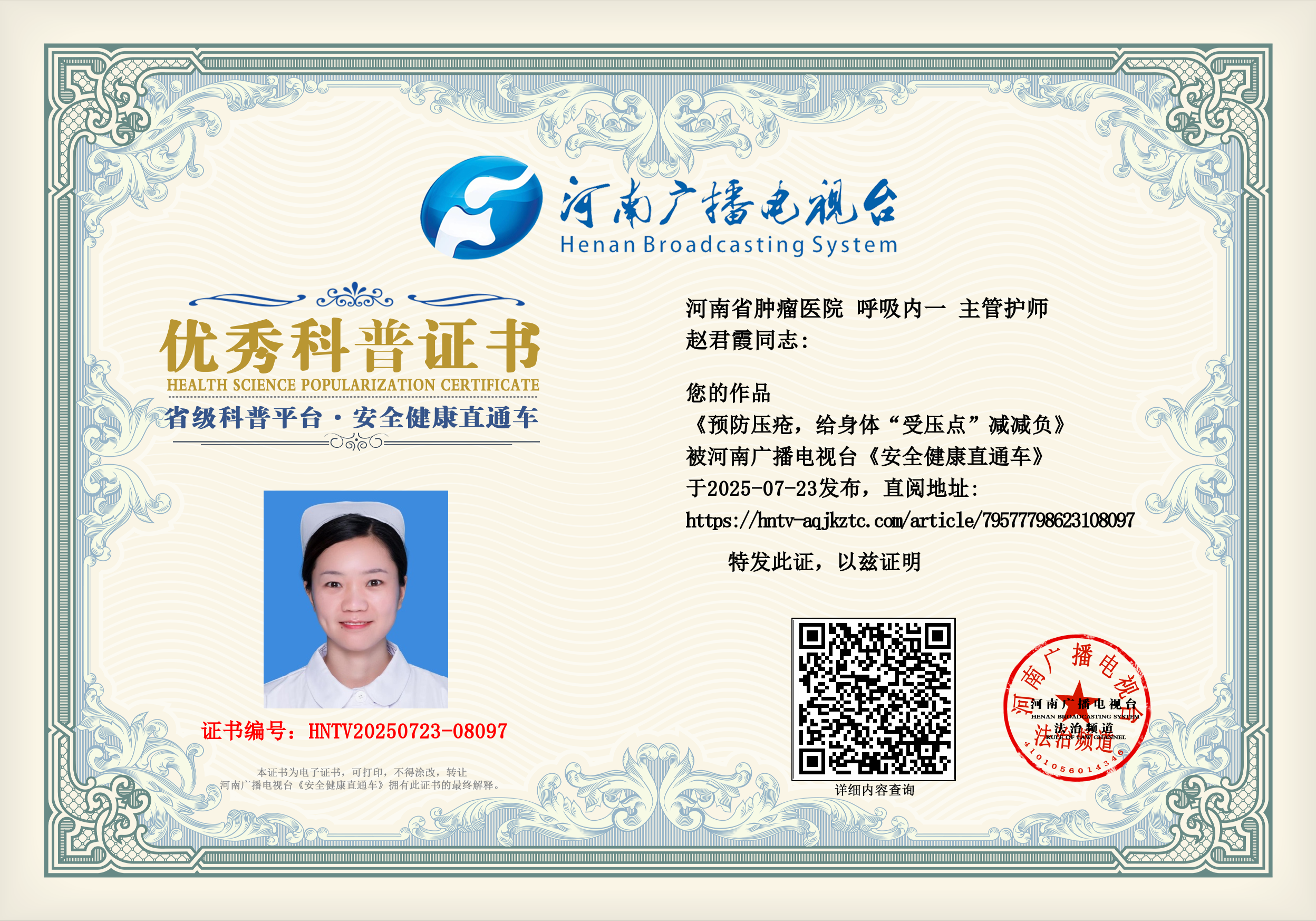 (赵君霞 河南省肿瘤医院 呼吸内一 主管护师)