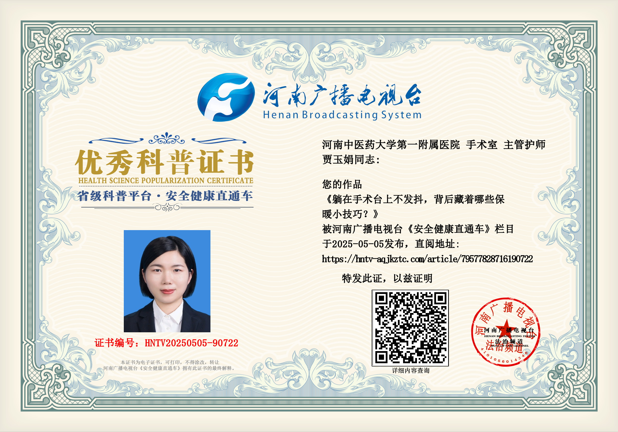(贾玉娟 河南中医药大学第一附属医院 手术室 主管护师)
