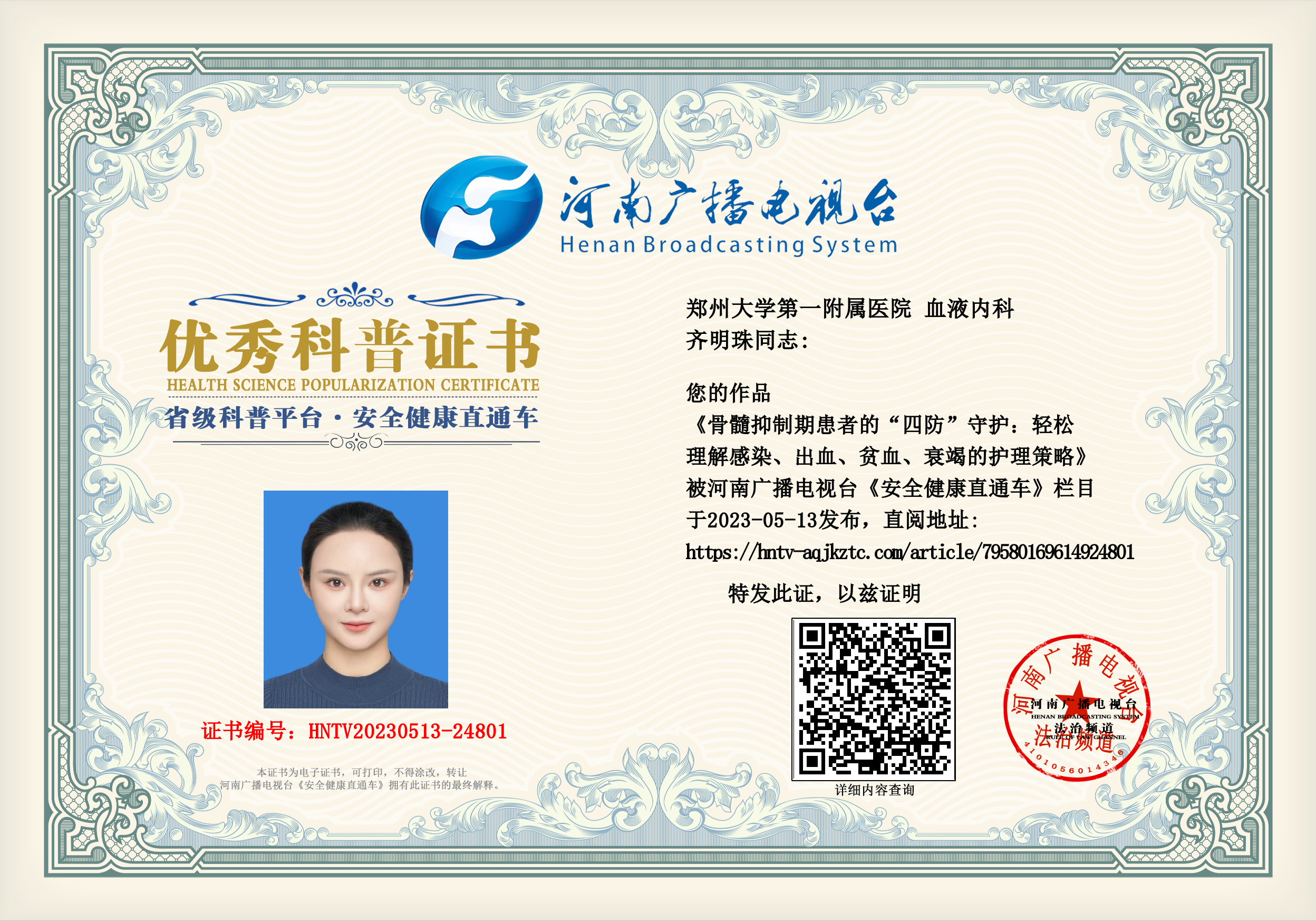 (齐明珠 郑州大学第一附属医院 血液内科)