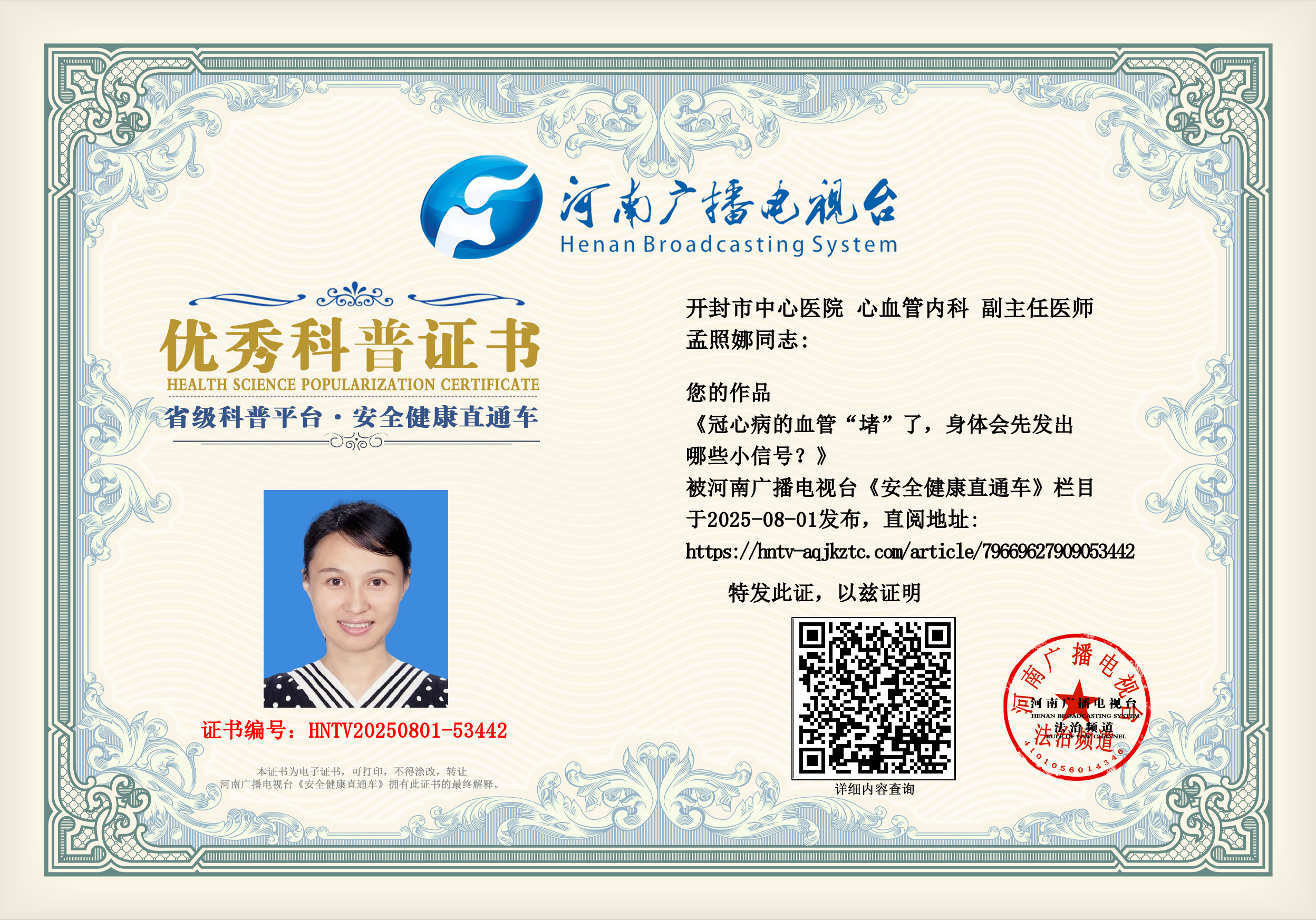(孟照娜 开封市中心医院 心血管内科 副主任医师)