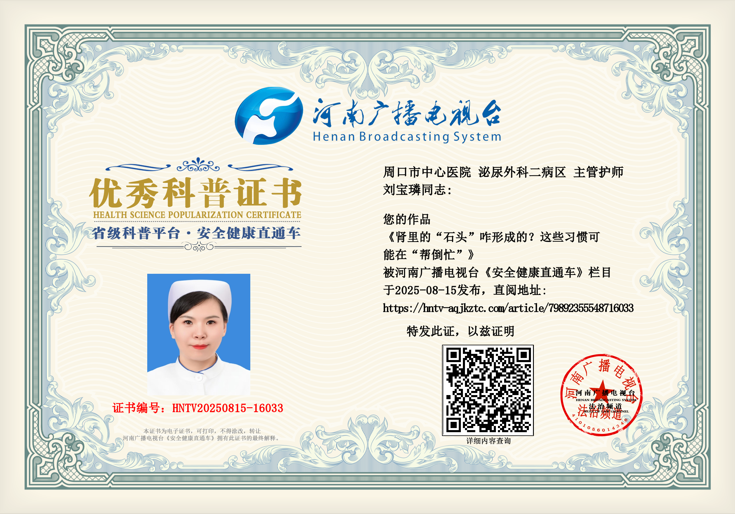 (刘宝璘 周口市中心医院 泌尿外科二病区 主管护师)