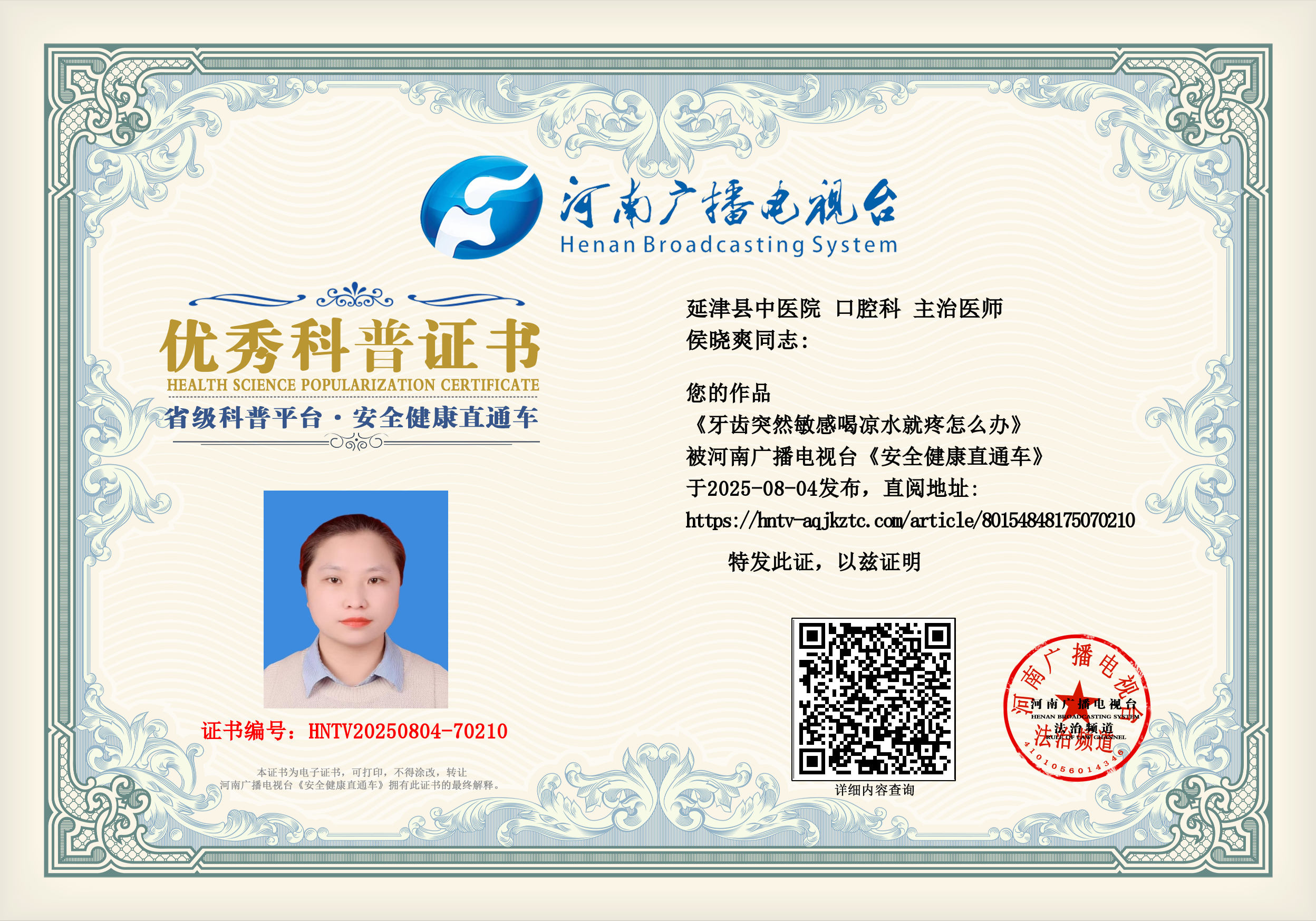 (侯晓爽 延津县中医院 口腔科 主治医师)