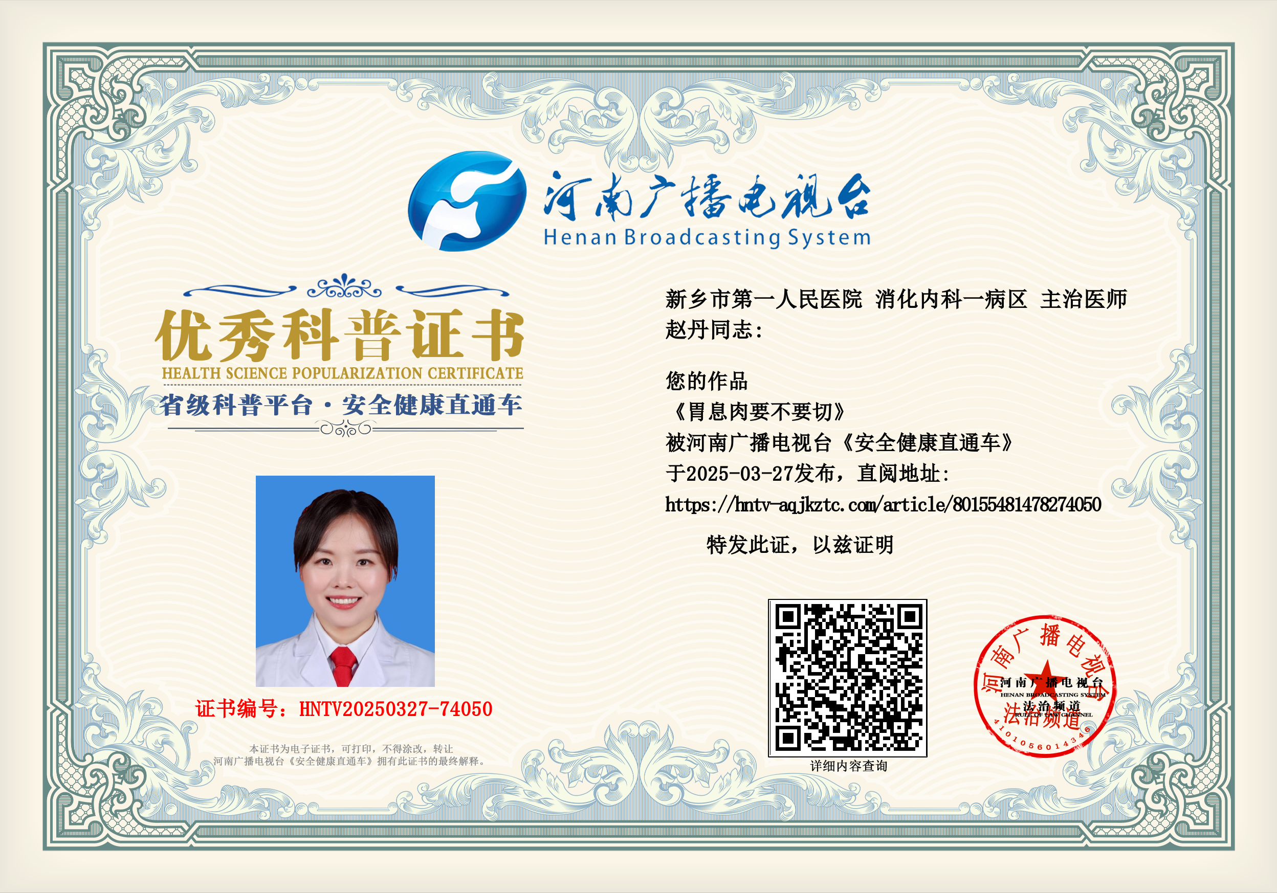 (赵丹 新乡市第一人民医院 消化内科一病区 主治医师)
