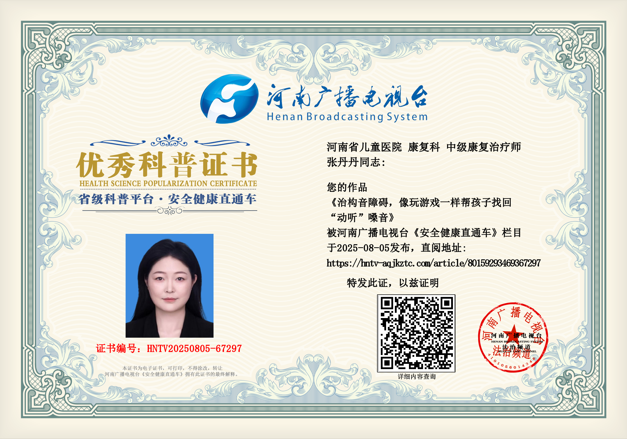 (张丹丹 河南省儿童医院 康复科 中级康复治疗师)