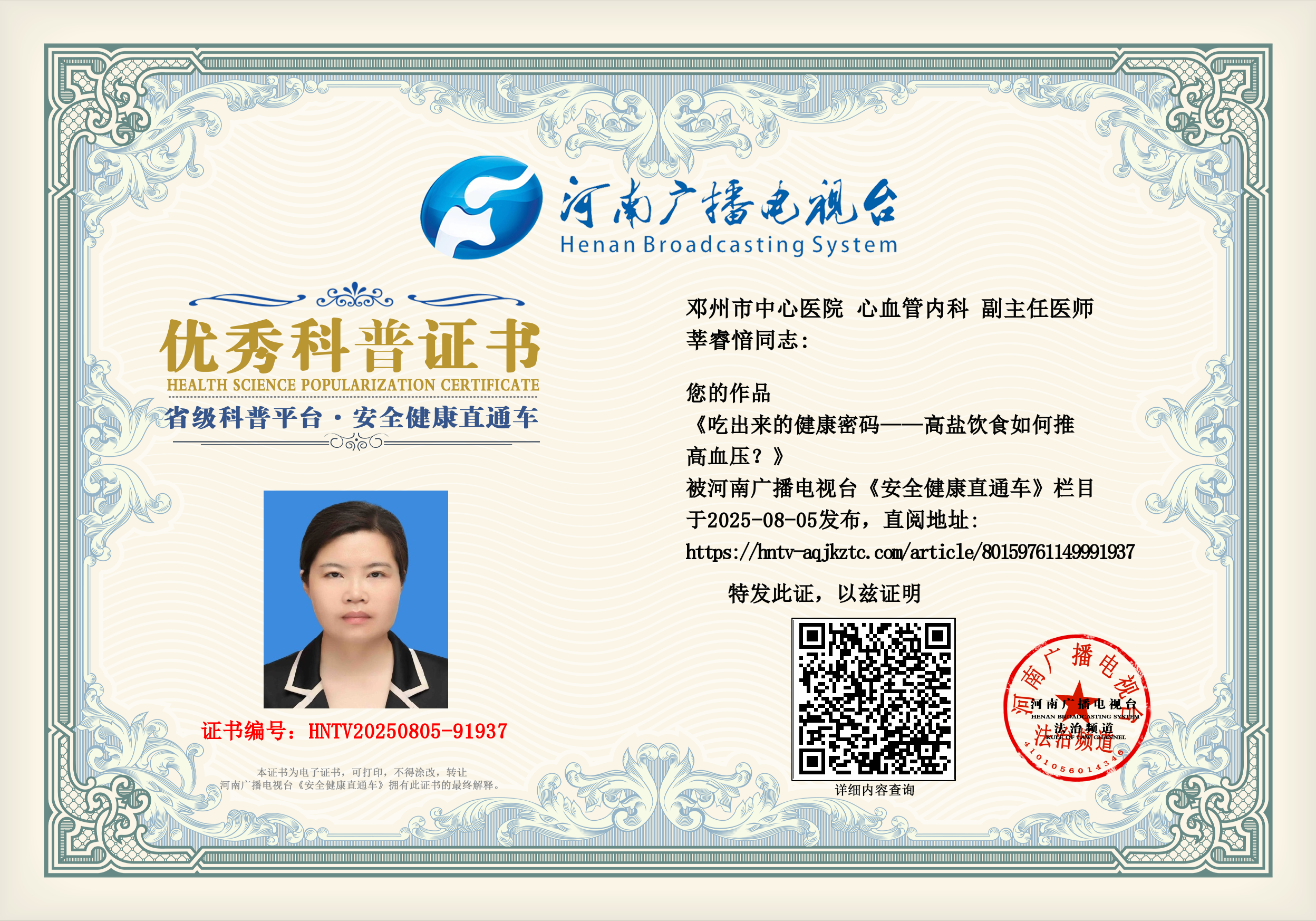 (莘睿愔 邓州市中心医院 心血管内科 副主任医师)