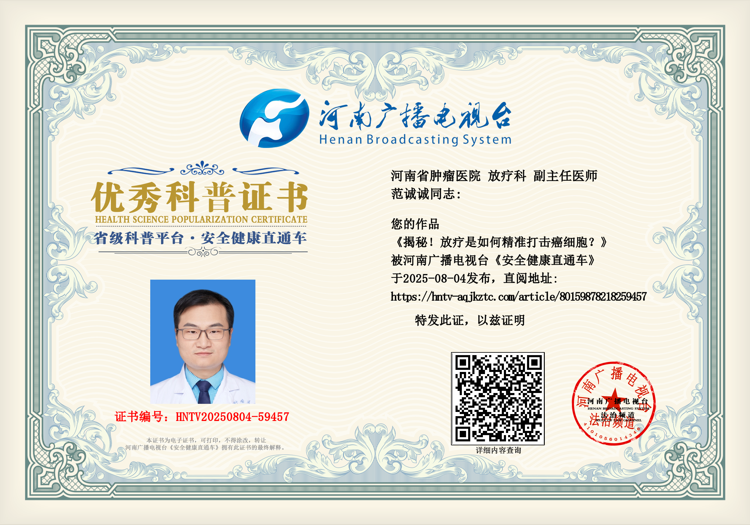 (范诚诚 河南省肿瘤医院 放疗科 副主任医师)