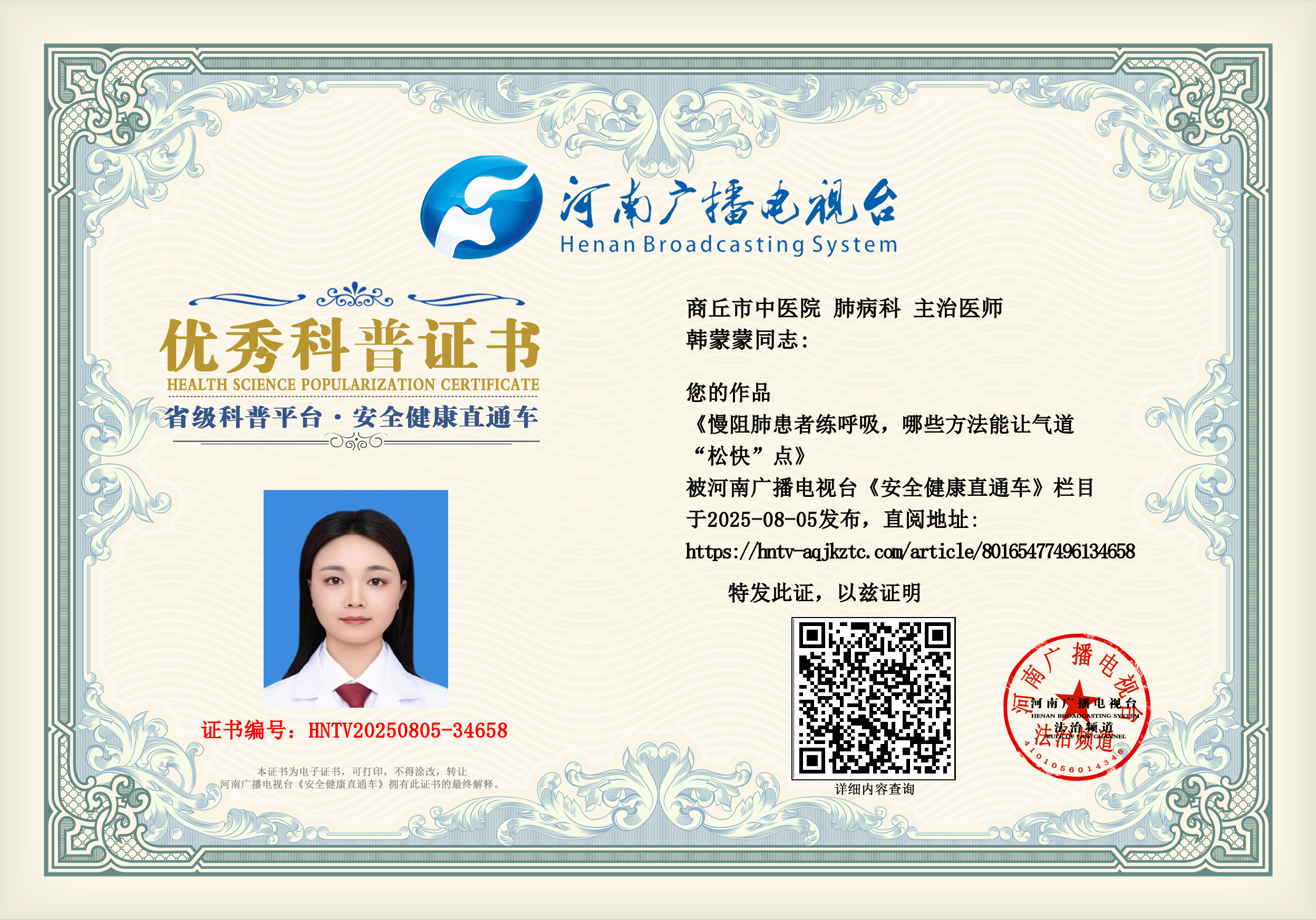 (韩蒙蒙 商丘市中医院 肺病科 主治医师)