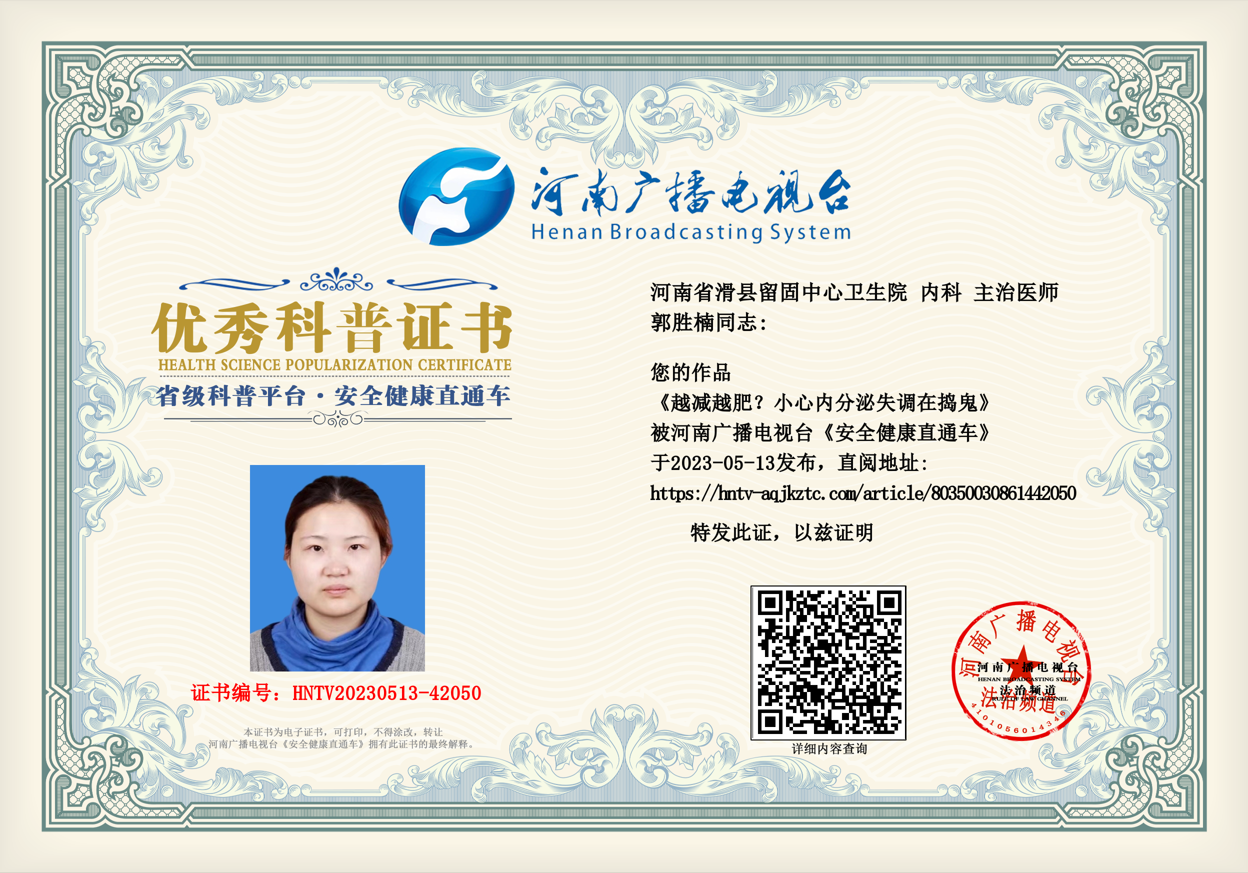 (郭胜楠 河南省滑县留固中心卫生院 内科 主治医师)